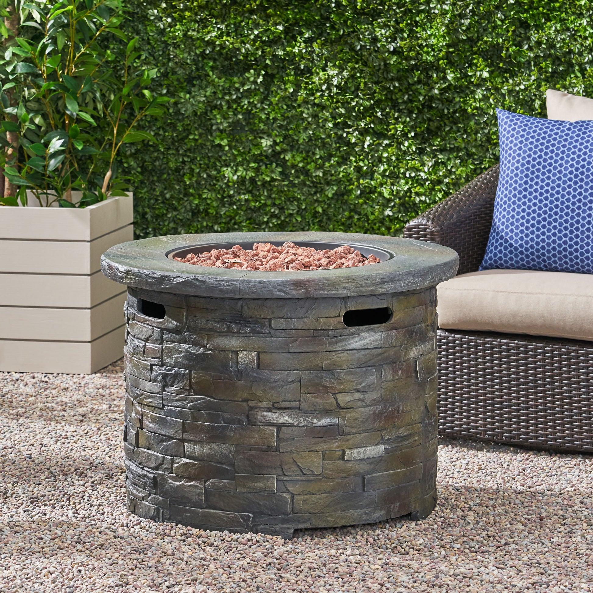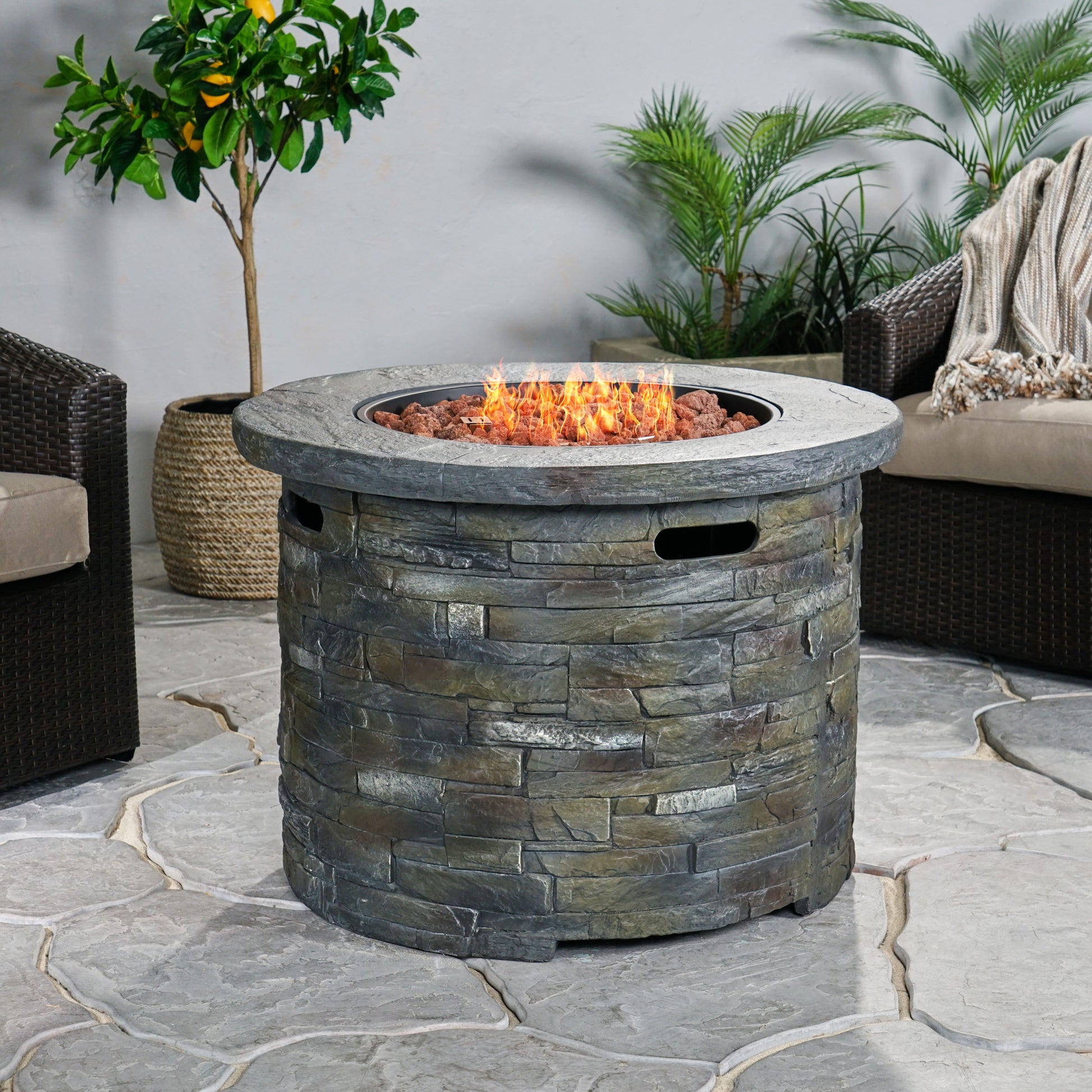 Outdoor 35" Lightweight Concrete Round Propane Fire Pit - 40,000 BTU, Natural Stone (Tank Inside)