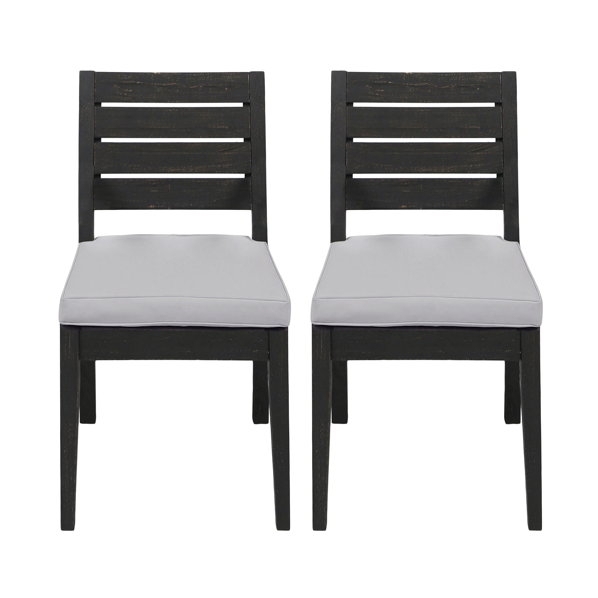 Outdoor Acacia Wood Armless Dining Chair with Cushions (Set of 2) , Sandblasted Dark Gray + Light Gray