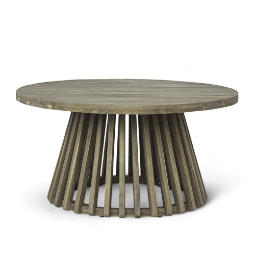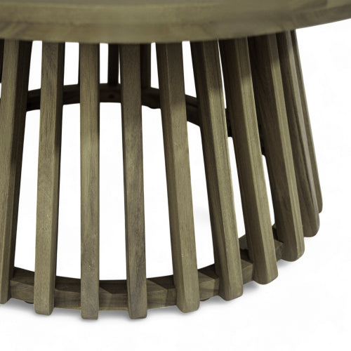 - STYLISH DESIGN: This coffee table is made up of a round table top as and a distinctive base. The base is composed of multiple strips of wood, which not only reveals the unique shape of the table, but also makes it sturdy enough.