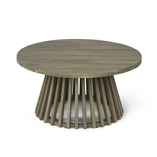 Outdoor Acacia Wood Patio Coffee Table, Round Coffee Table for Backyard, Lawn, Balcony,Grey Finish
