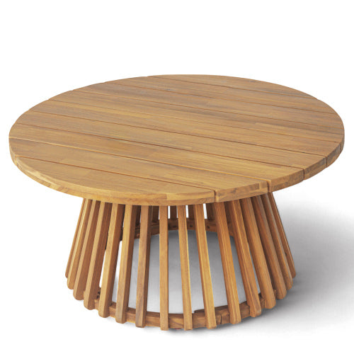- STYLISH DESIGN: This coffee table is made up of a round table top as and a distinctive base. The base is composed of multiple strips of wood, which not only reveals the unique shape of the table, but also makes it sturdy enough.