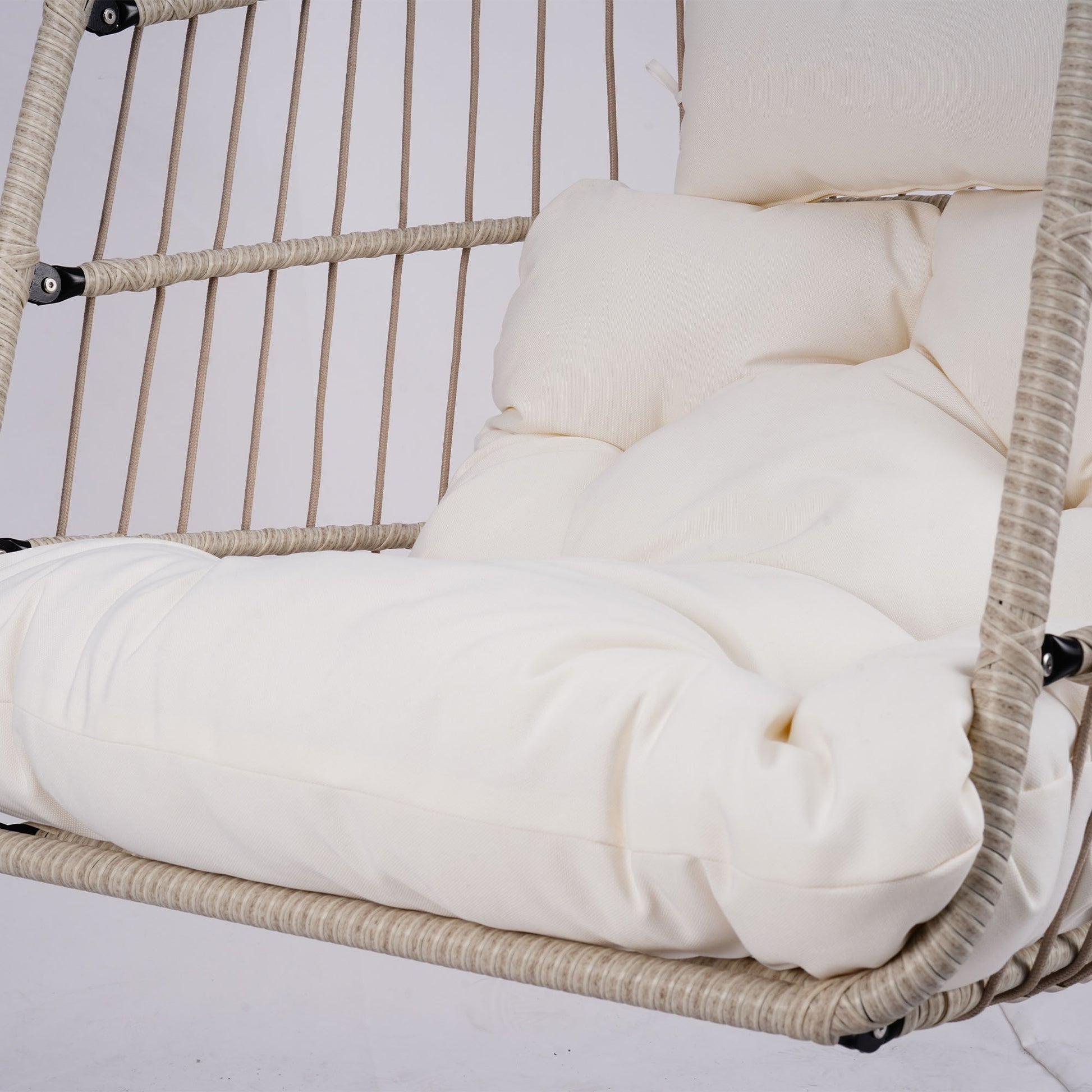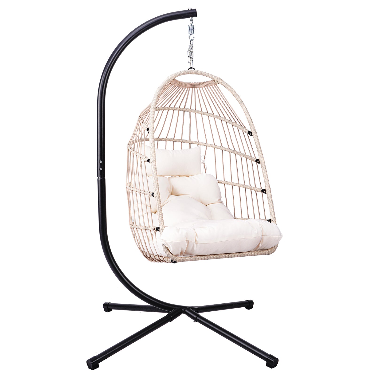 Outdoor Egg Hanging Chair with Stand, Patio Wicker Swing Egg Chair Indoor Swinging Chair Outdoor Hammock Egg Chair Off-white