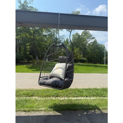 - Perfect Enjoyment.Make a reading nook inside or outside of your home in this simple,cocoon-like egg chair.This unique swinging Chair is the perfect addition to any space outside,a backyard patio,deck,in a sun-room or garden,or near a pool,or outdoor Bar.The hanging egg chair is a naturally chic patio piece. Perhaps the ultimate indulgence when it comes to outdoor furniture,its playful form offers an idyllic spot in which to curl up and relax,cocooning us as we drift softly in the breeze.