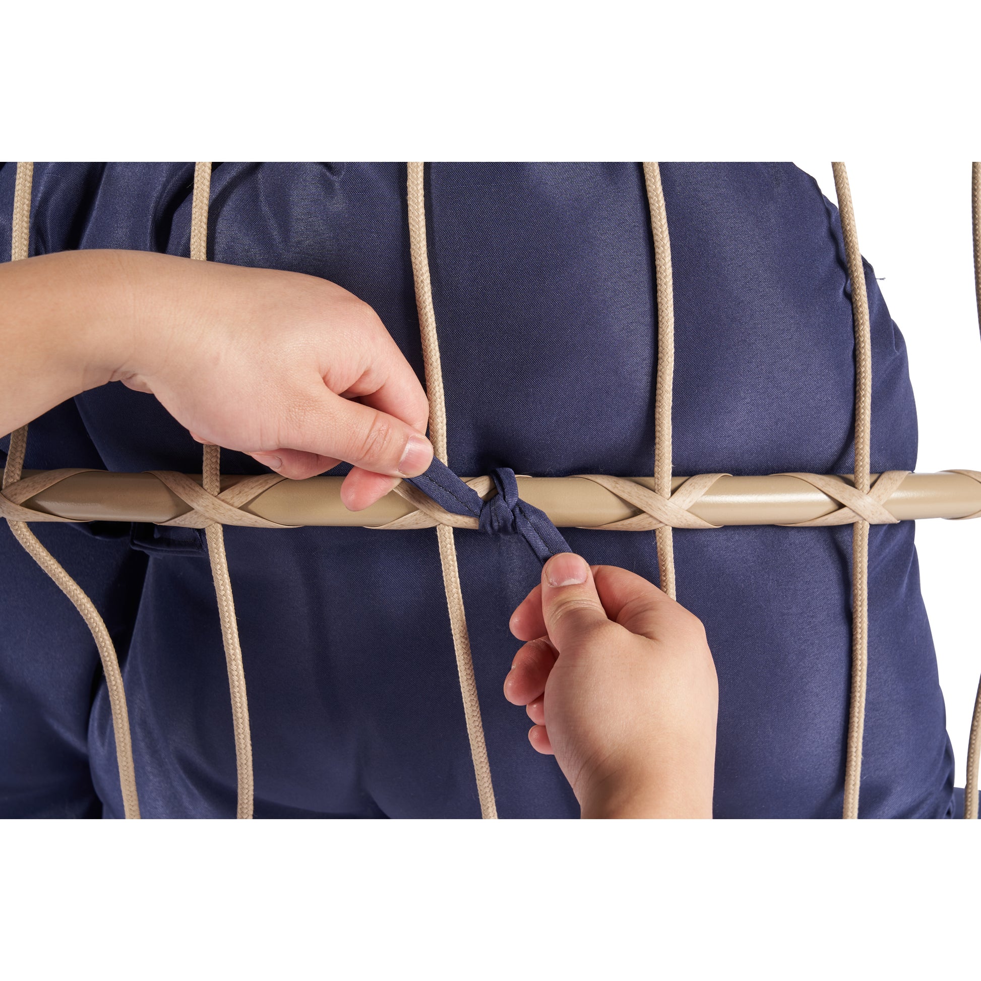 Outdoor Garden Rattan Egg Swing Chair Hanging Chair WOOD + DARK BLUE
