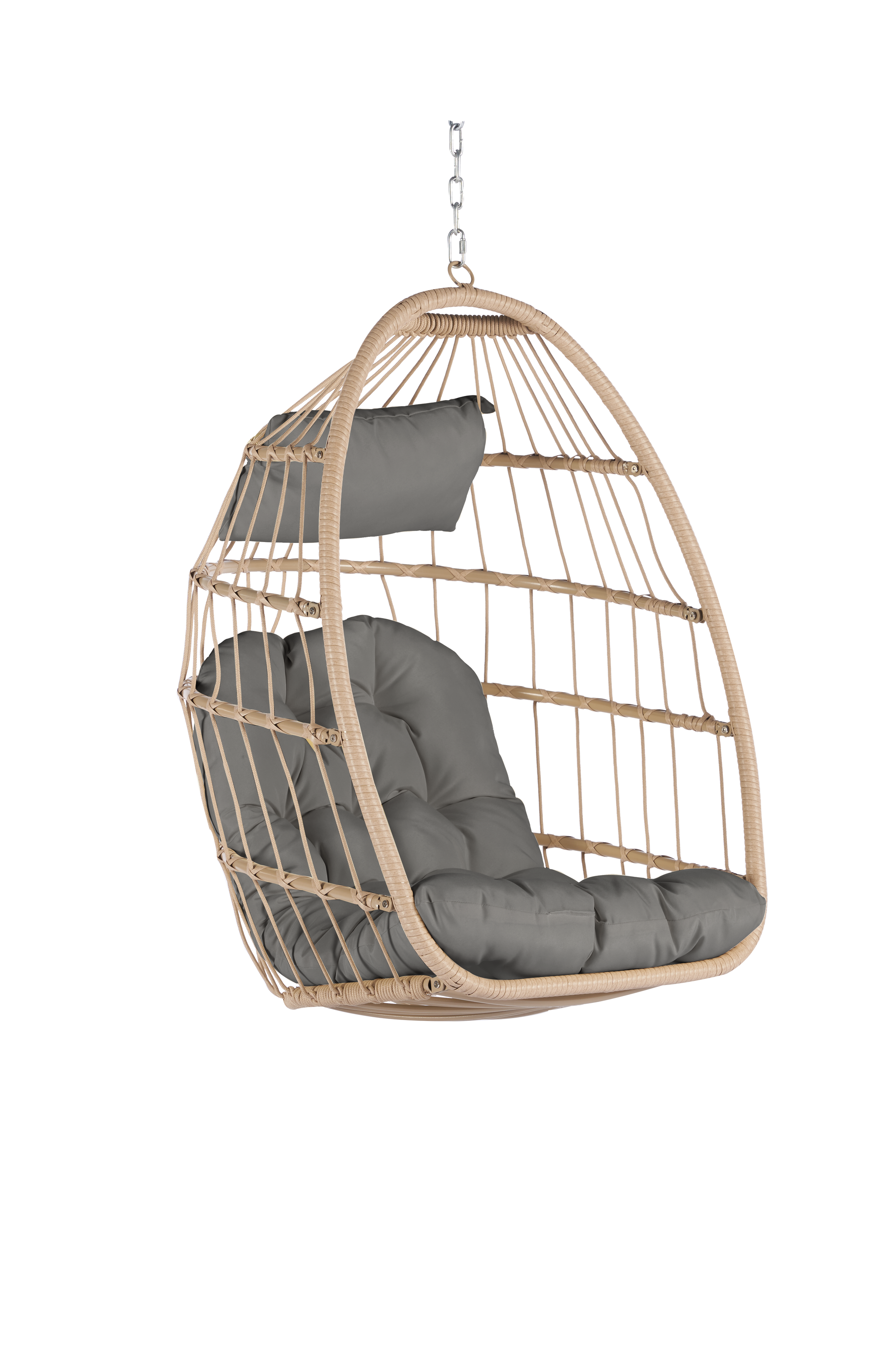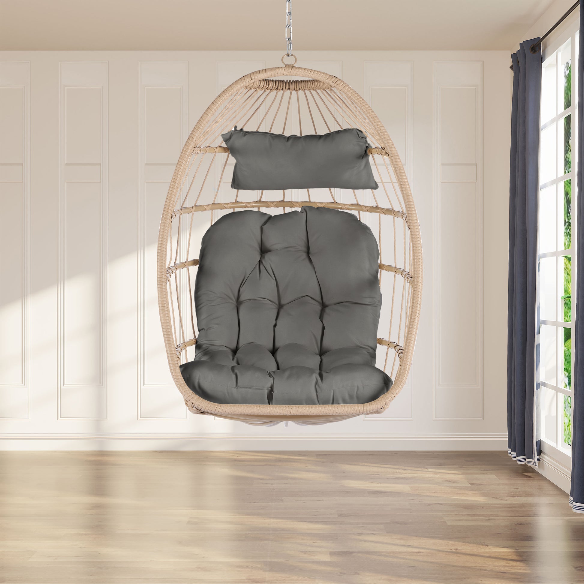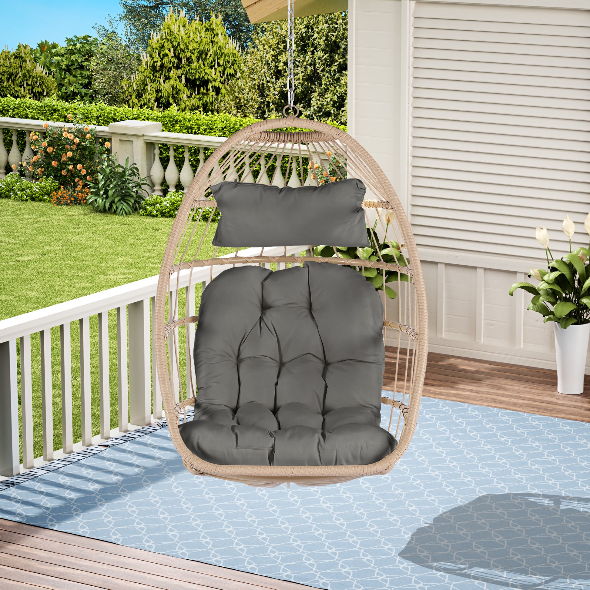 Outdoor Garden Rattan Egg Swing Chair Hanging Chair Wood+Dark Gray