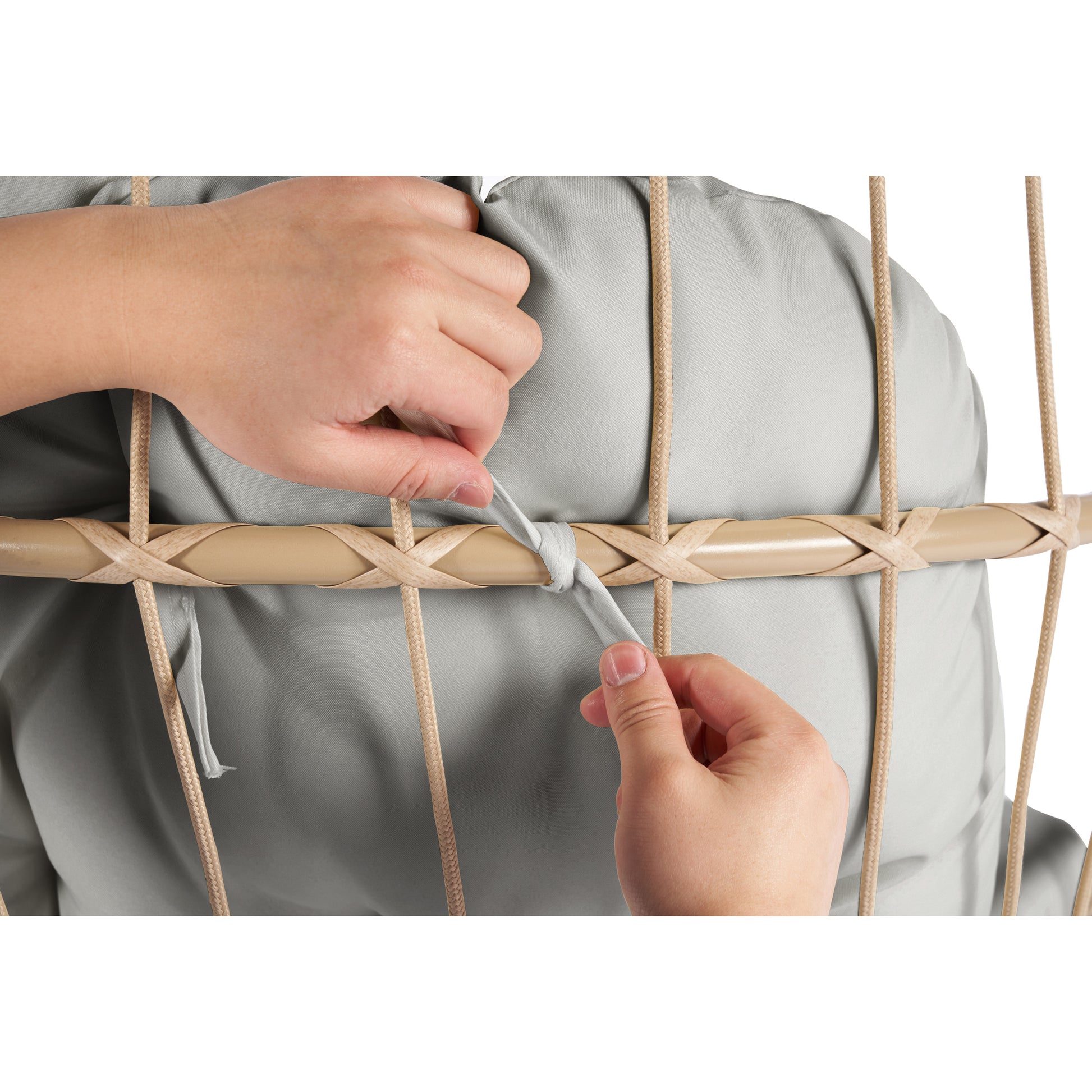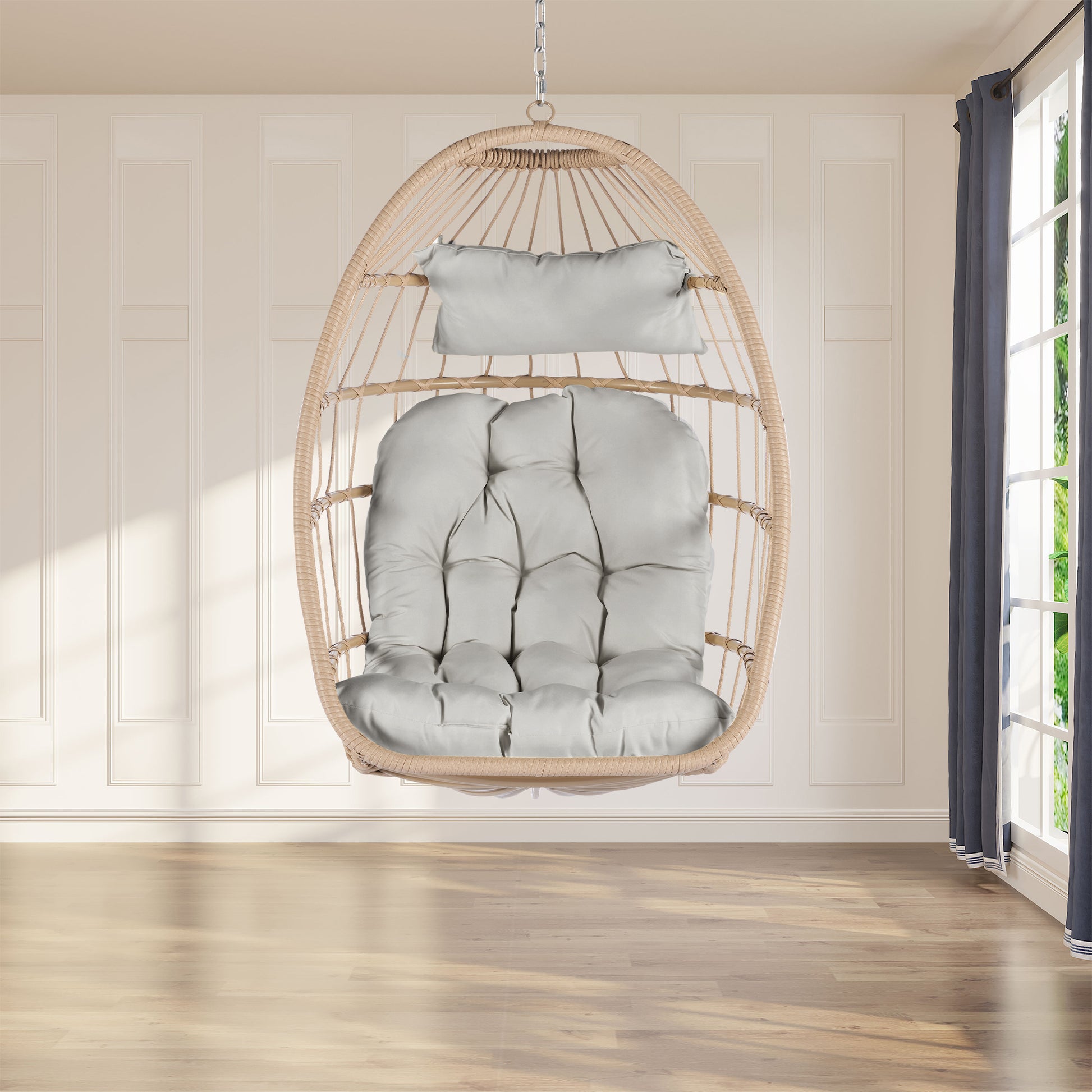 Outdoor Garden Rattan Egg Swing Chair Hanging Chair Wood+Light Gray