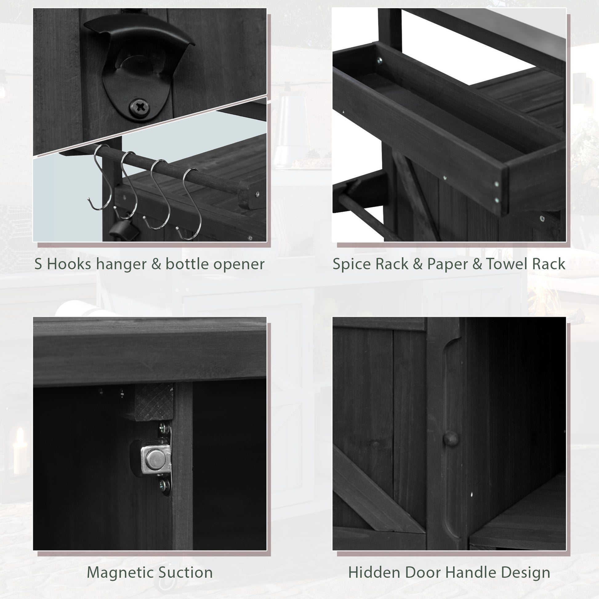 - [Internal Storage Racks] Our outdoor kitchen island features an internal storage rack design inspired by the functionality of refrigerator doors. These racks effectively optimize storage capacity while occupying minimal space, making them an ideal addition to kitchens, poolside, patio, and dining areas.
