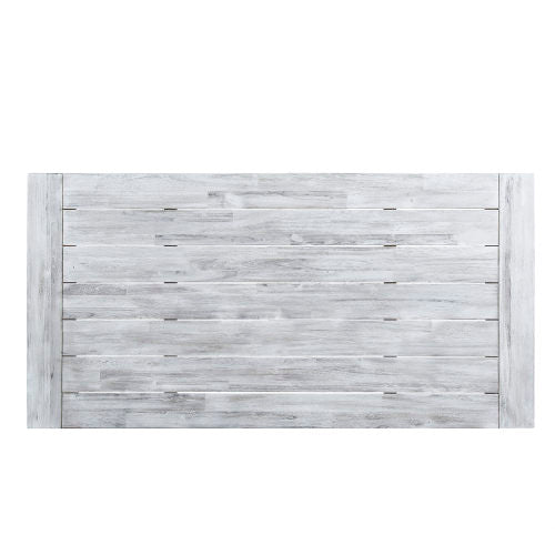 Outdoor Light Grey Sandblast Finish Acacia Wood Dining Table with Black Rustic Metal Finish Frame