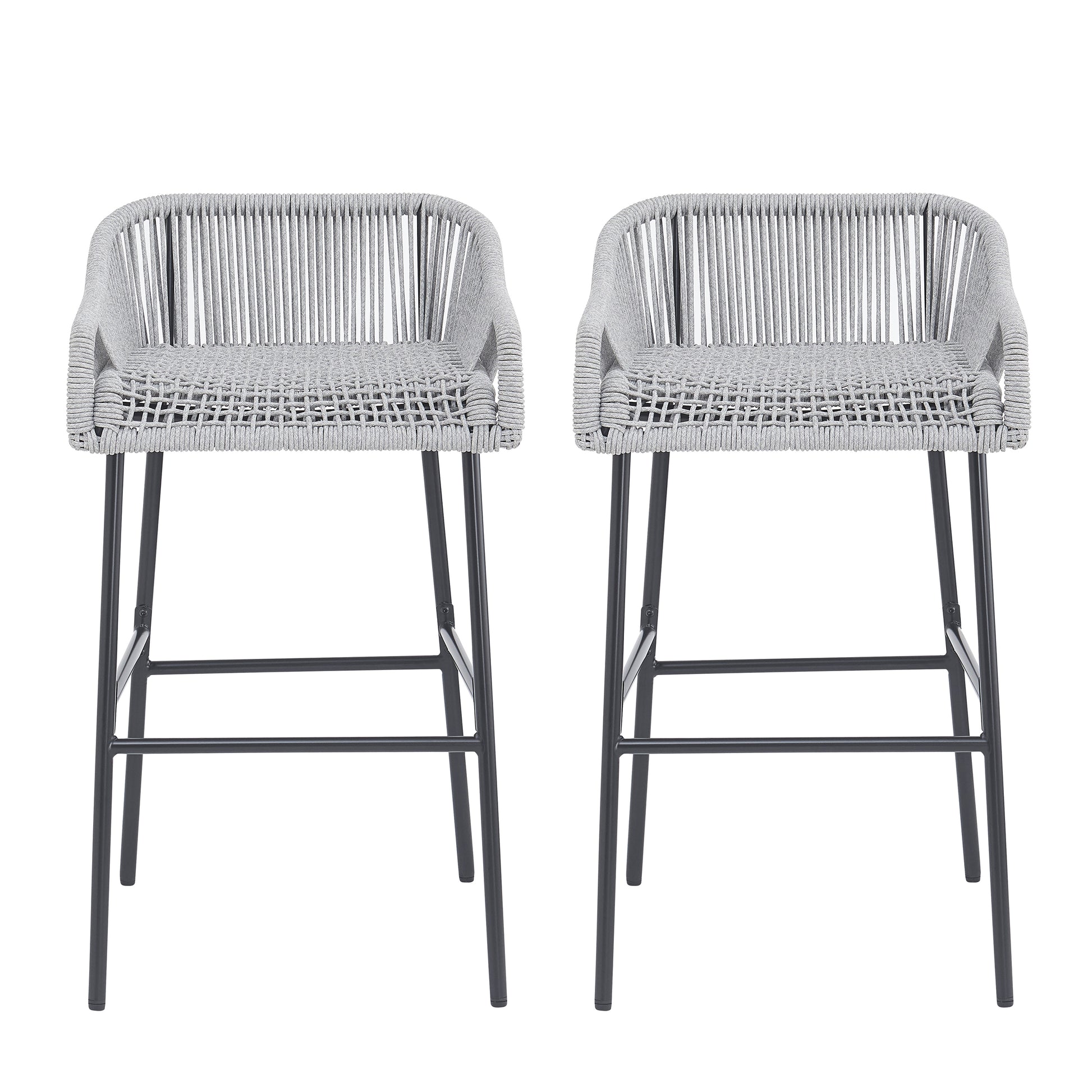 Outdoor Patio Light Gray Rope Bar Stool, Set of 2