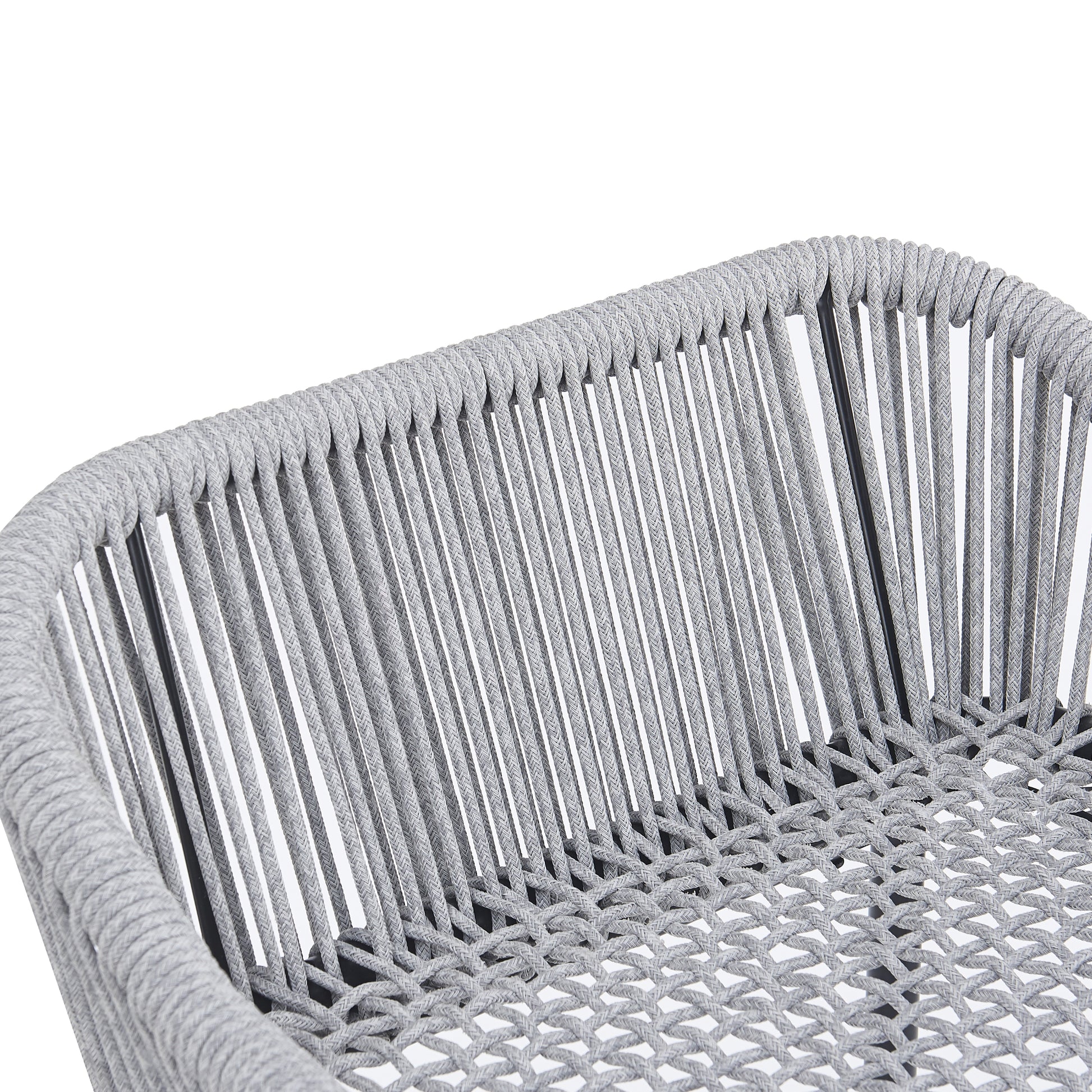 - Chic Gray Aesthetic: The seat and backrest are crafted from durable light gray synthetic rope, offering a neutral, modern look that complements any outdoor decor. The open weave design adds texture while ensuring breathability, keeping you cool even on warm days.