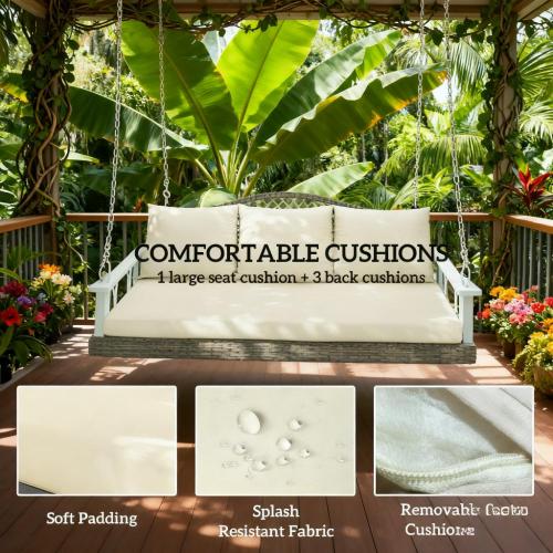 - Weather-Resistant: Crafted with powder-coated steel frames and wrapped in plastic wicker for a strong core and extra protection against UV, water, rust, and numerous other weather conditions you might expect your backyard porch swing to encounter