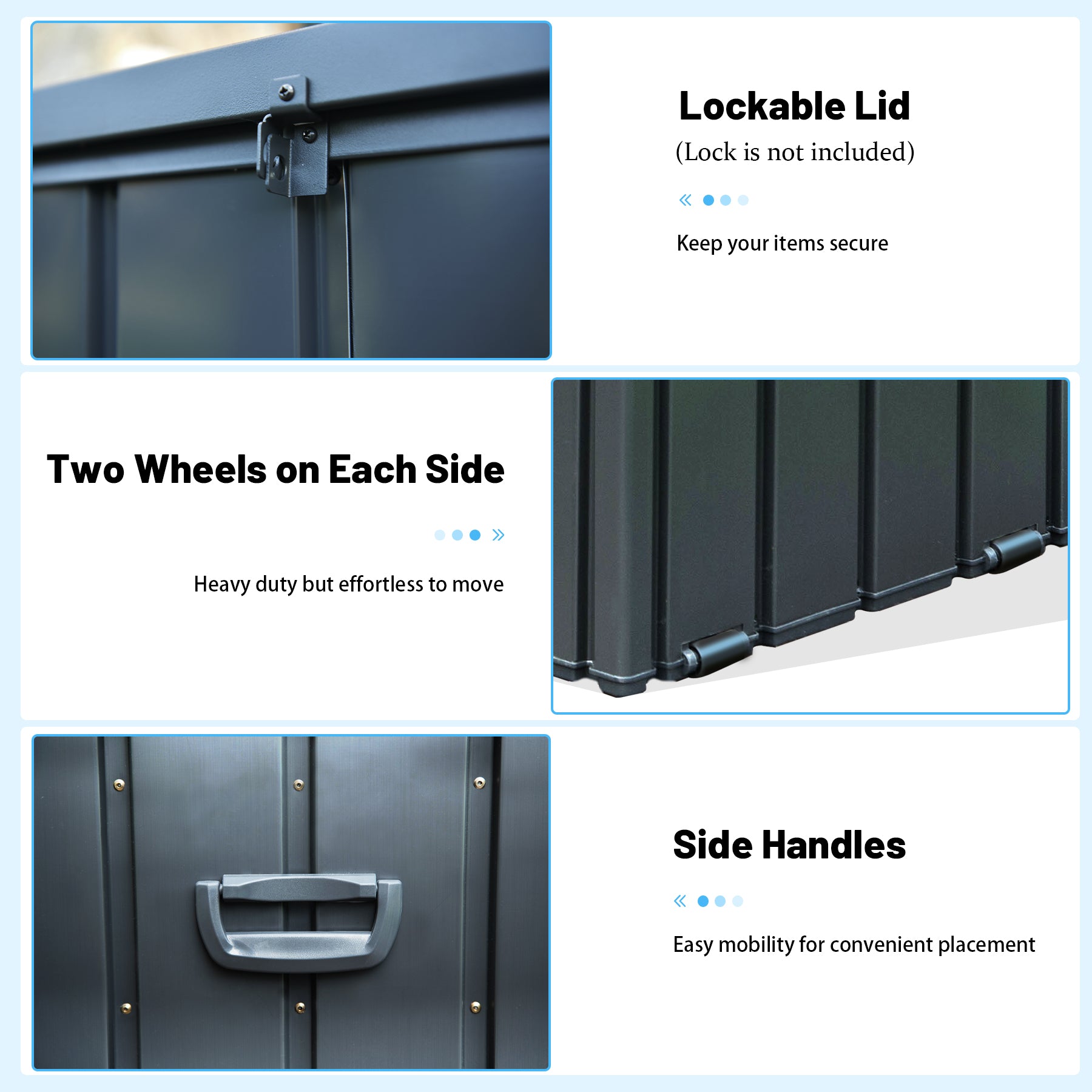 - UPGRATED METAL OUTDOOR STORAGE BOX - Our poolside deck box is more durable and stronger than other resin/rattan/wood deck box. With exclusive corrosion and oxidation resistant tech make it more long-lasting and looks like new after long time using