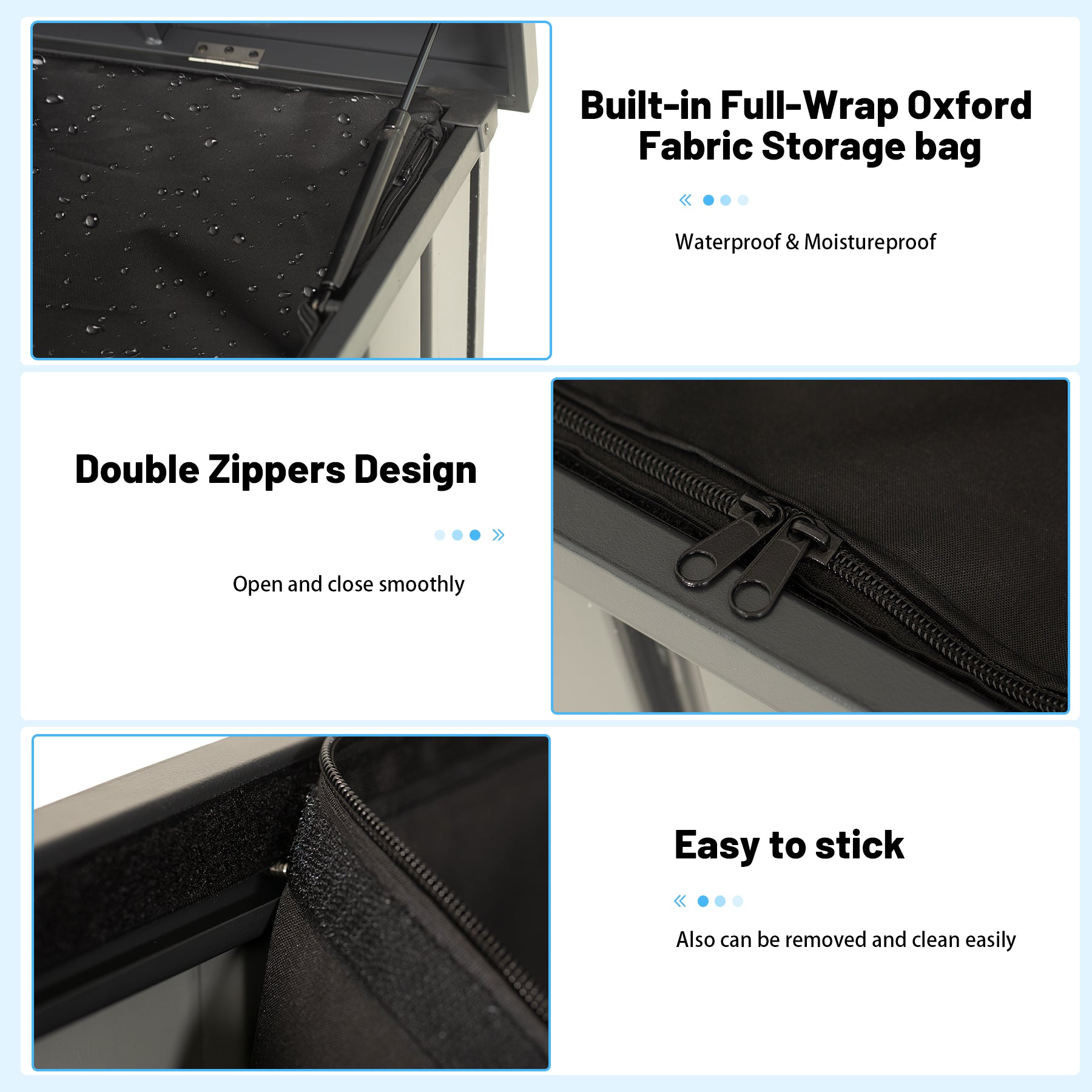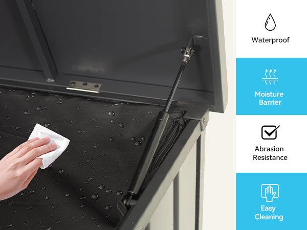 - MOISTURE & WATER RESISTANT BARRIER - Outdoor metal deck box has built-in a full-wrap Oxford fabric storage bag which creates a physical barrier, making it ideal for storing clothing, bedding, toys, pet supplies, books, or tools