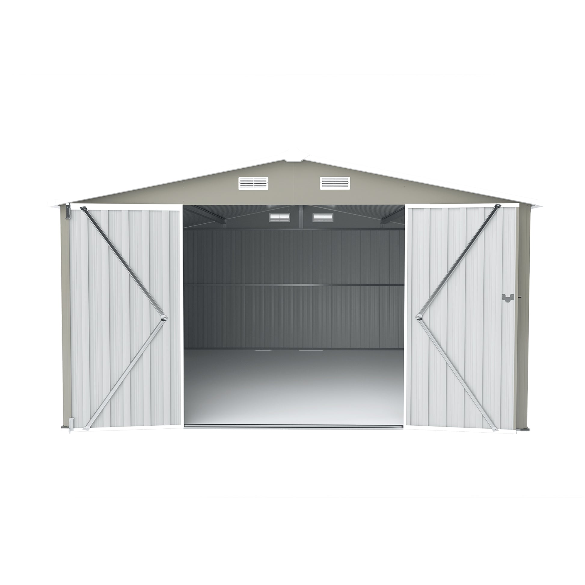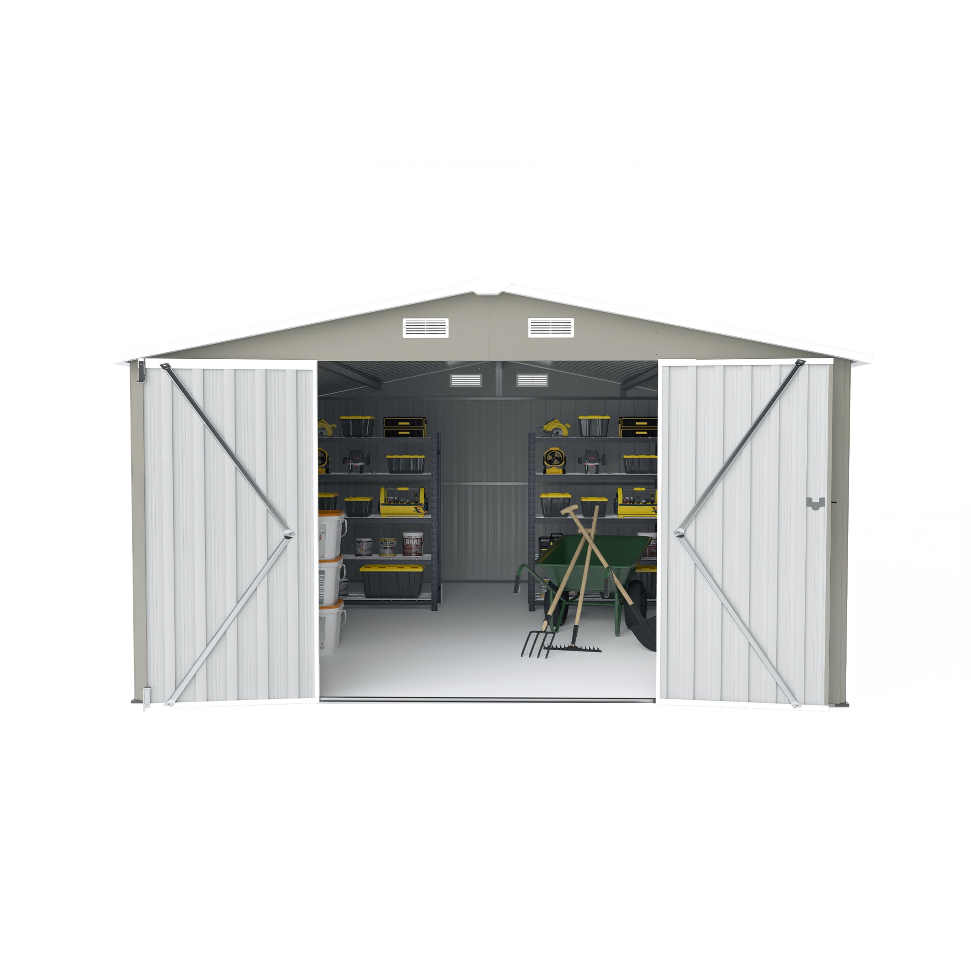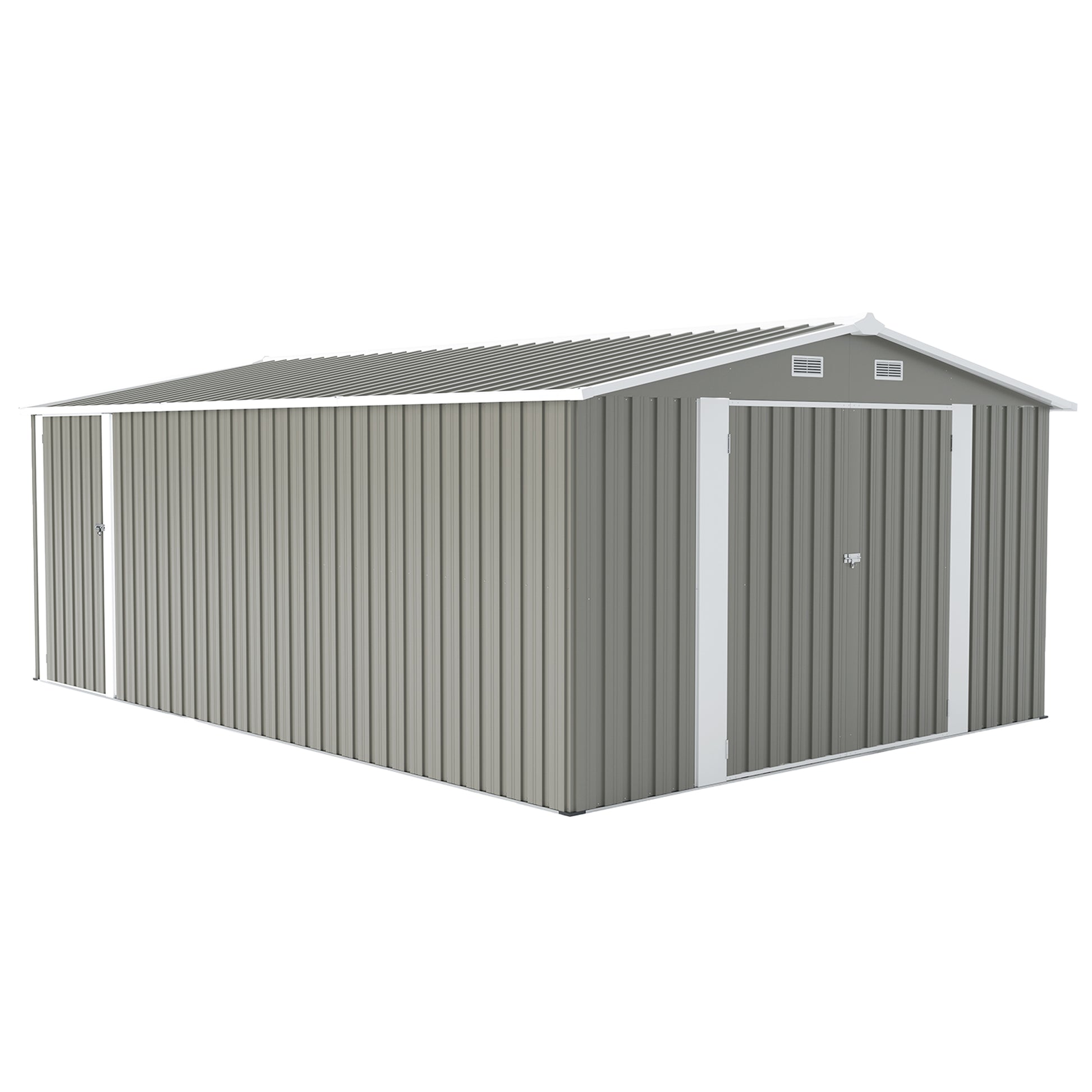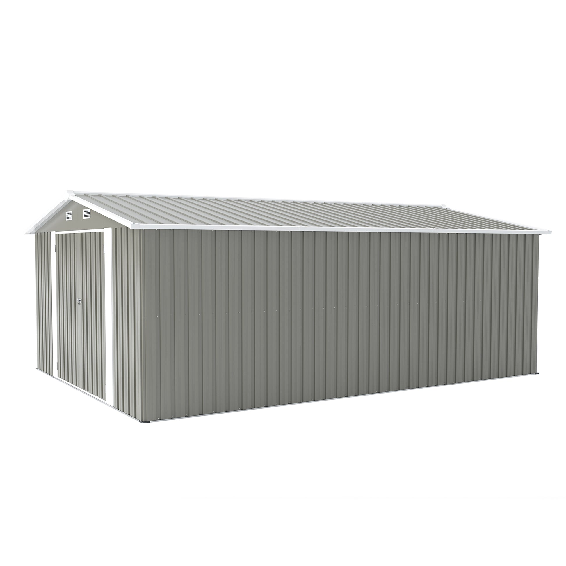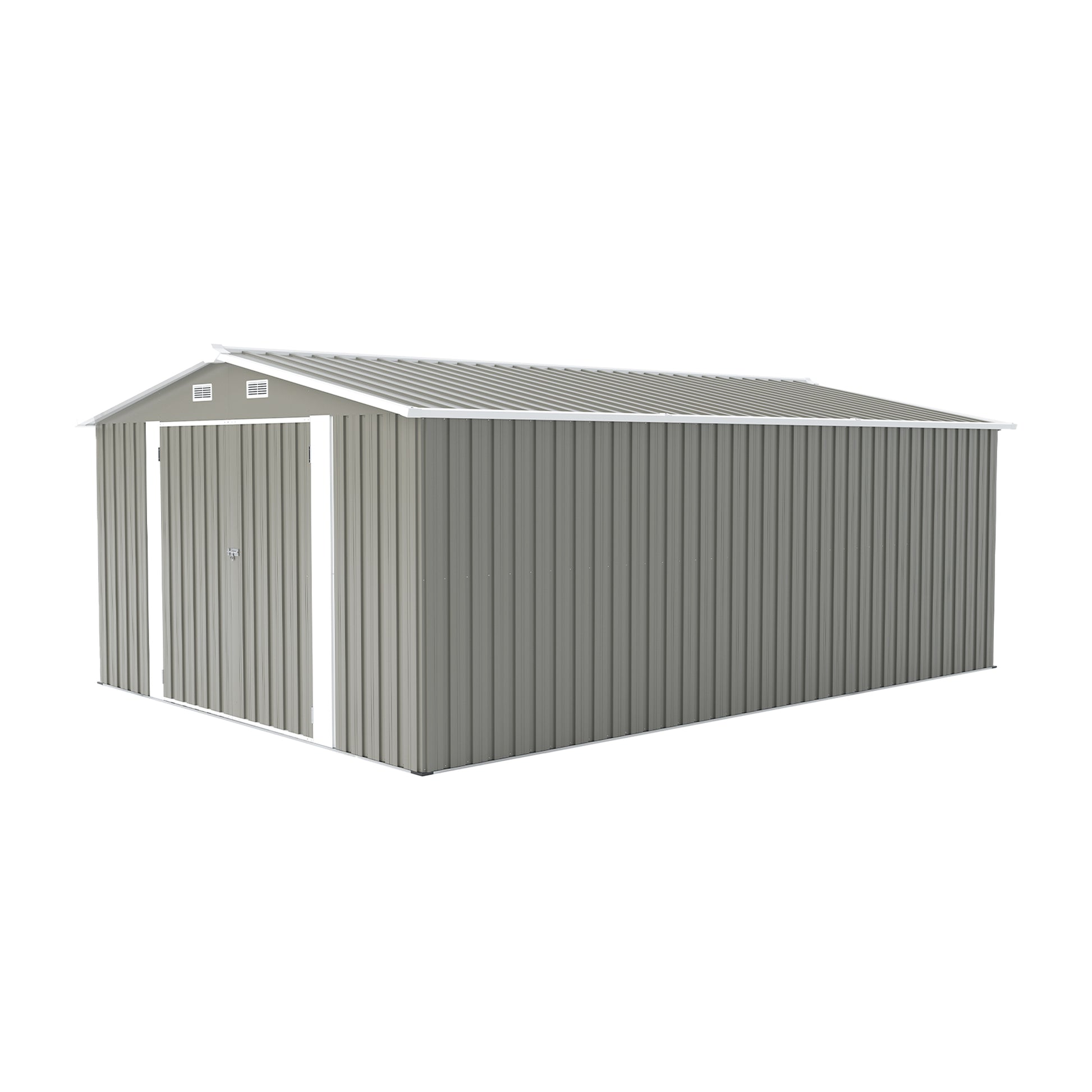 Outdoor Storage Shed 10×14 FT with 3 Lockable Doors,4 Air Vents & Sloped Roof,Utility Tool Shed Metal Storage Garden Sheds Frame and 4 Vents,for Backyard,Patio,Lawn,Light Grey