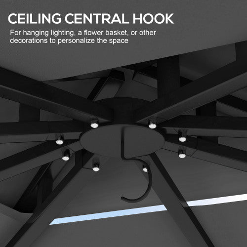 Outsunny 10' x 12' Patio Gazebo with Netting, Double Roof Outdoor Gazebo Canopy Shelter, Solid Metal Frame for Garden, Lawn, Backyard, Deck, Dark Gray