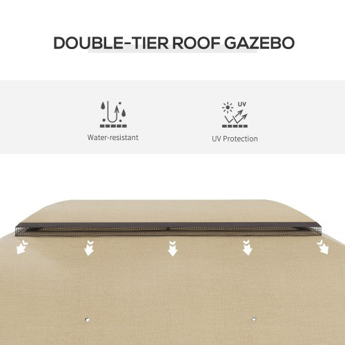 Outsunny 10' x 13' Patio Gazebo, Outdoor Gazebo Canopy Shelter with Netting, Vented Roof, Steel Frame for Garden, Lawn, Backyard, and Deck, Beige