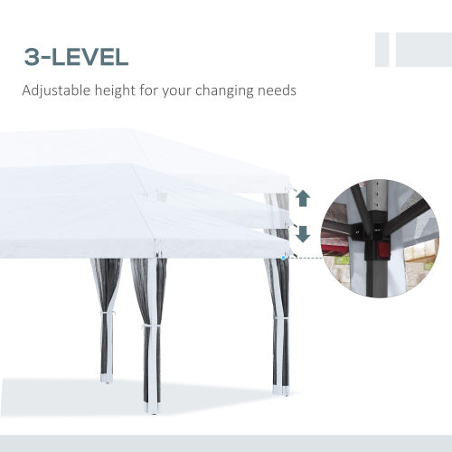 Outsunny 10' x 20' Pop Up Canopy Tent with Netting, Heavy Duty Instant Sun Shelter, Large Tents for Parties with Carry Bag for Outdoor, Garden, Patio, Cream White