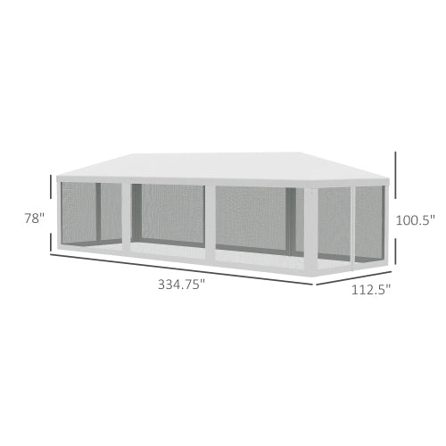 Outsunny 10' x 28' Party Tent Canopy, Outdoor Event Shelter Gazebo with 8 Removable Mesh Sidewalls, Zipper Doors, Steel Frame, White