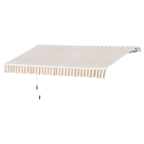Outsunny 12' x 10' Retractable Awning Patio Awnings Sun Shade Shelter with Manual Crank Handle, 280g/m² UV & Water-Resistant Fabric and Aluminum Frame for Deck, Balcony, Yard, Beige and White