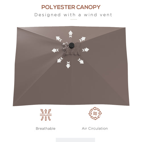 Outsunny 9' x 7' Solar Umbrella, LED Lighted Patio Umbrella for Table or Base with Tilt & Crank, Outdoor Umbrella for Garden, Deck, Backyard, Pool, Beach, Tan