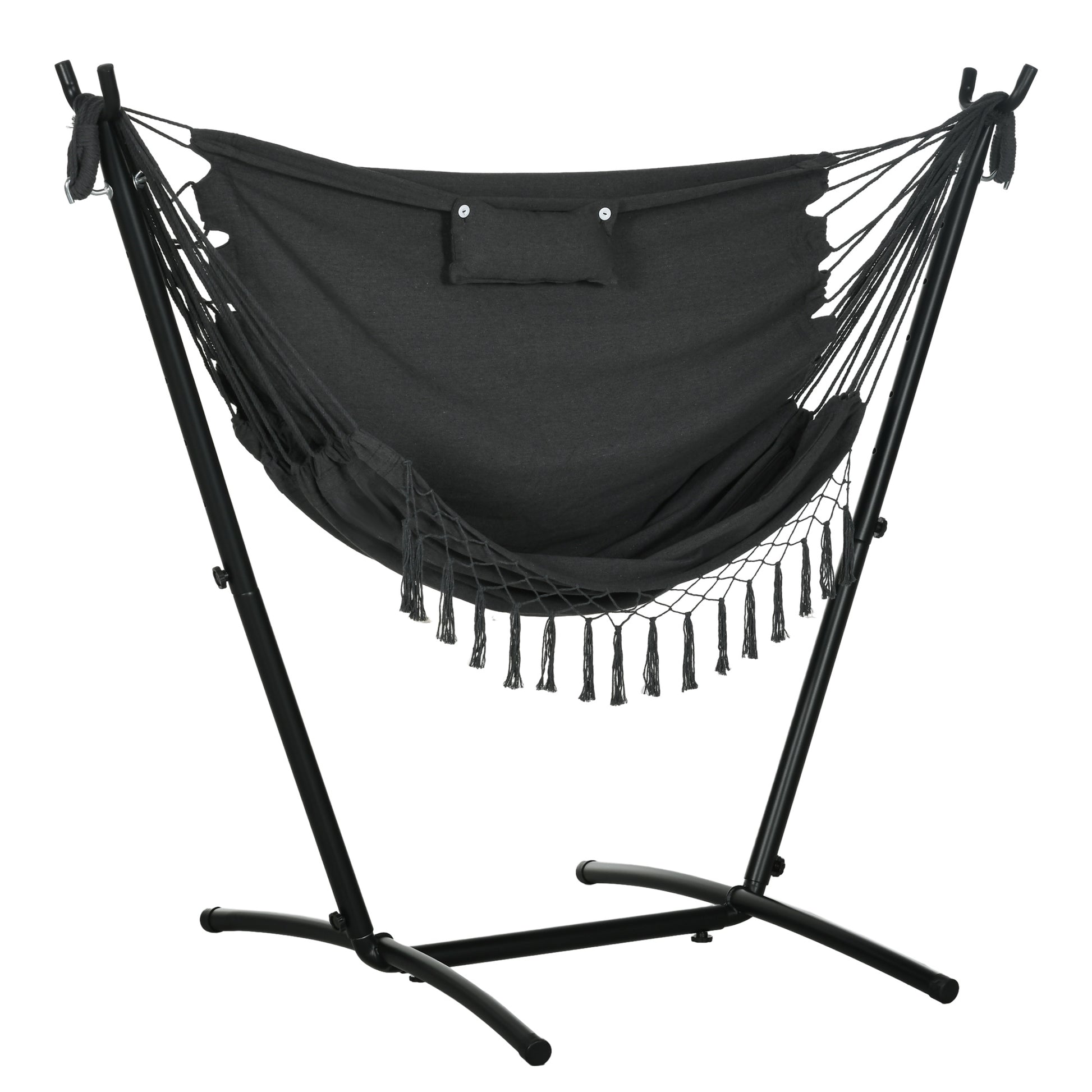 Outsunny Patio Hammock Chair with Stand, Outdoor Hammock Swing Hanging Lounge Chair with Side Pocket and Headrest, Dark Gray