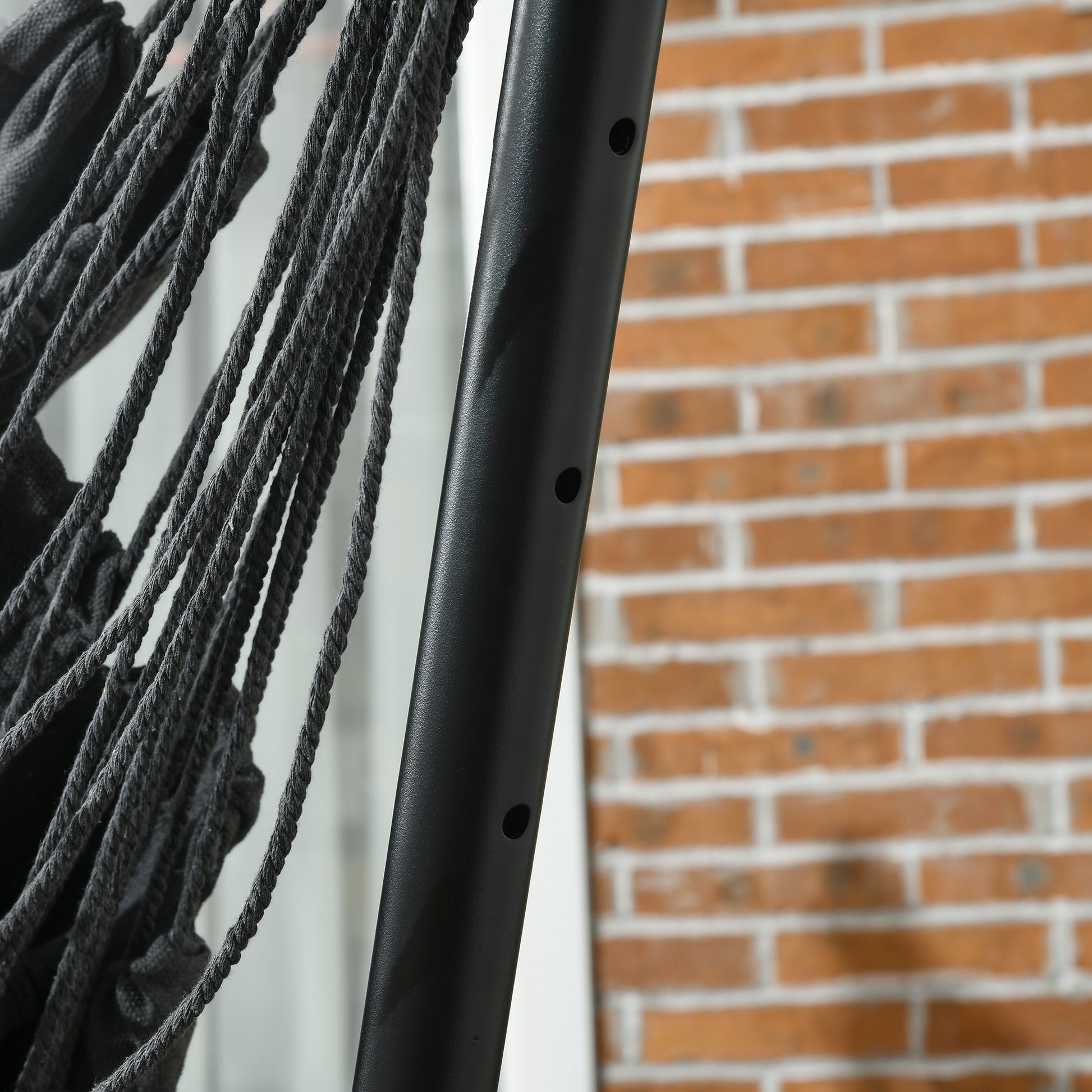 - Outdoor Ready: Our swing chair stands out with a weather-ready build and a bold personality, making it great for indoor or outdoor. Powder-coated steel protects it from water and allows a 264 lbs. weight capacity. Rubber feet prevent surfaces from being scratched and help to hold it in place.