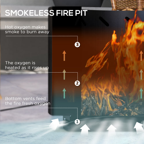 this oxygen is heated as it rises up the walls, causing conditions that allow smoke to burn away, resulting in clean, smokeless fire. - Poker Included: Thoughtfully included is an added fire wood poker. Move logs used for fuel around our round fire pit to ensure a burn-free camping trip while easily maintaining an optimal flame.