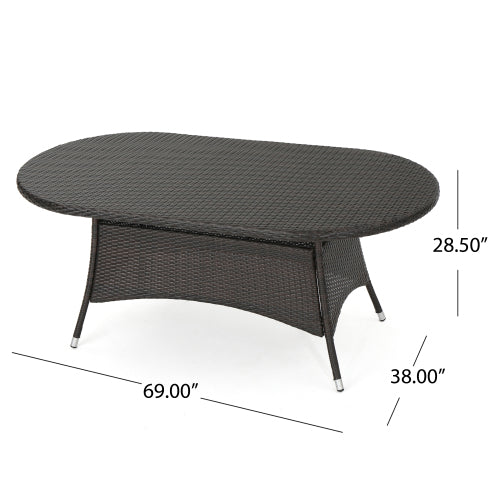 - Timeless Transitional Style: The Ramsey Outdoor Oval Wicker Dining Table boasts a classic yet modern look with its simple wicker finish and elegant silver-tipped legs, effortlessly enhancing any outdoor arrangement.