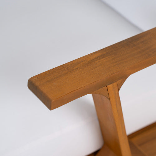 Patio Accent Chair 27.6" Wood Chair Outdoor Lounge Chair for Patios, Gardens, or Balcony, Teak Finish White Cushion
