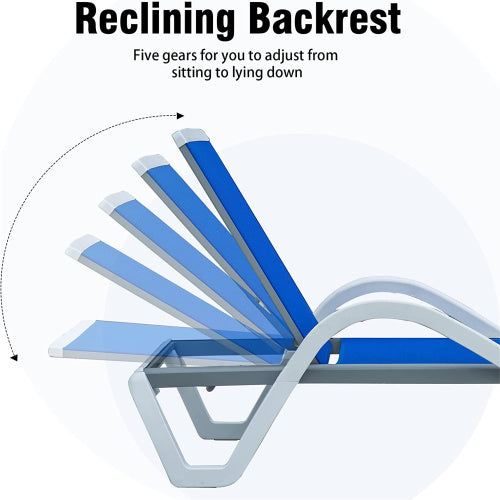 Patio Chaise Lounge Adjustable Aluminum Pool Lounge Chairs with Arm All Weather Pool Chairs for Outside,in-Pool,Lawn (Blue, 1 Lounge Chair+1 Plastic Table)
