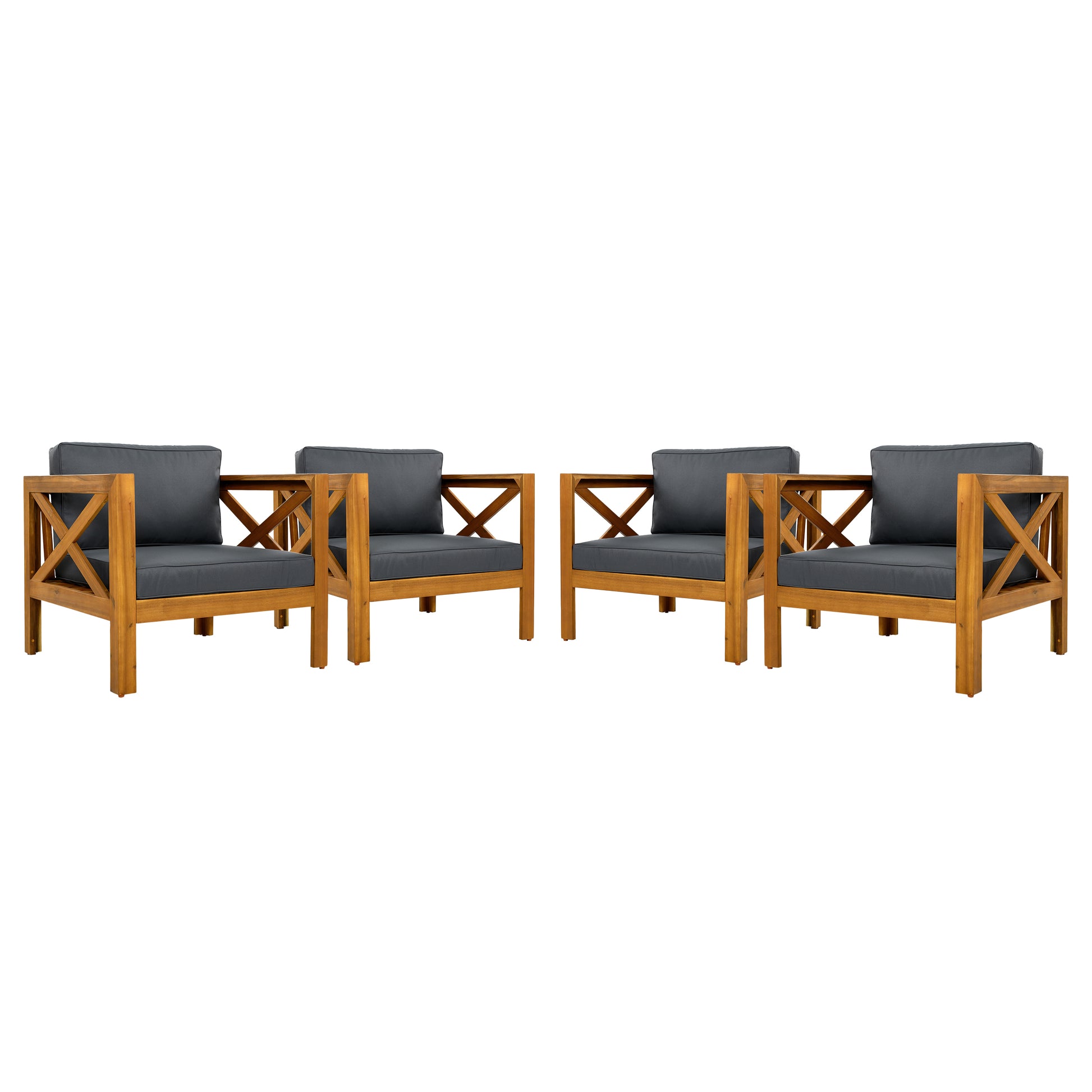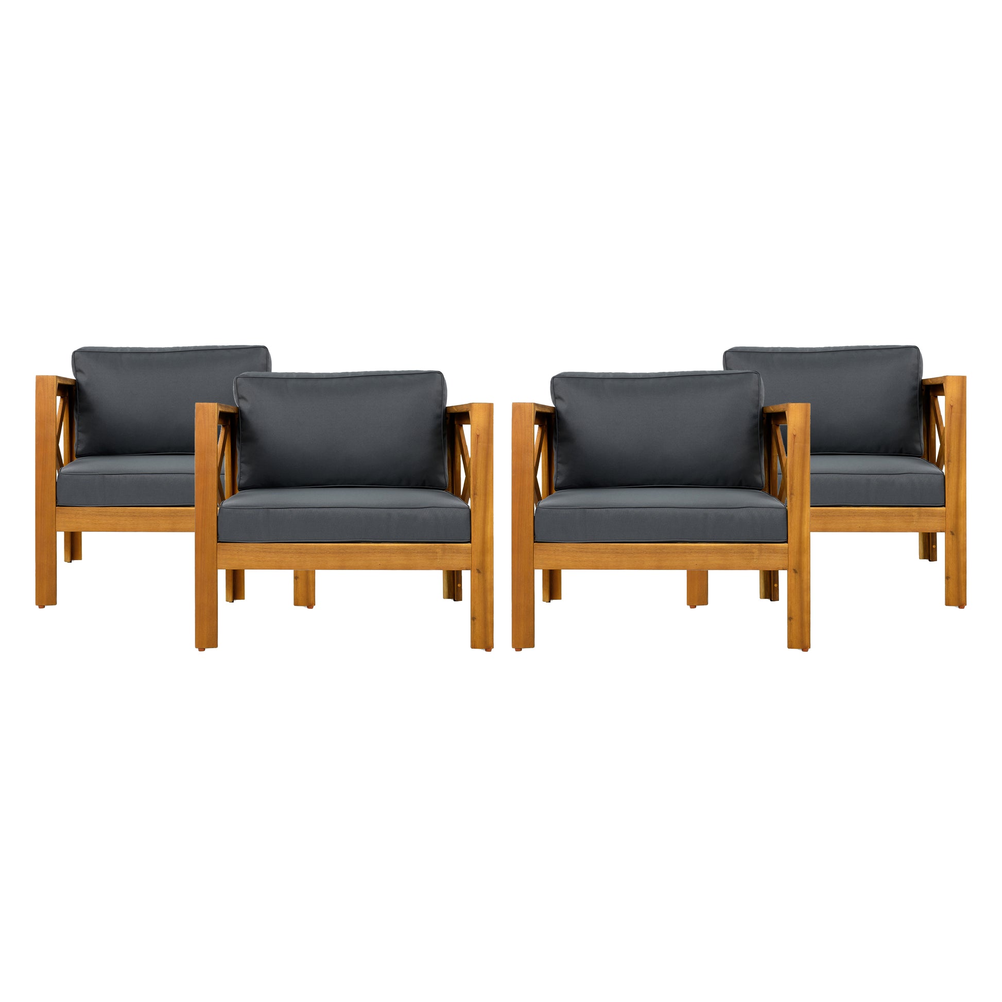 Patio Conversation Set, Outdoor Wood Conversation Seat(Set of 2),Armchair with Cushions,Foldable Acacia Wood Side Table,Teak Finish,Dark Grey cushion