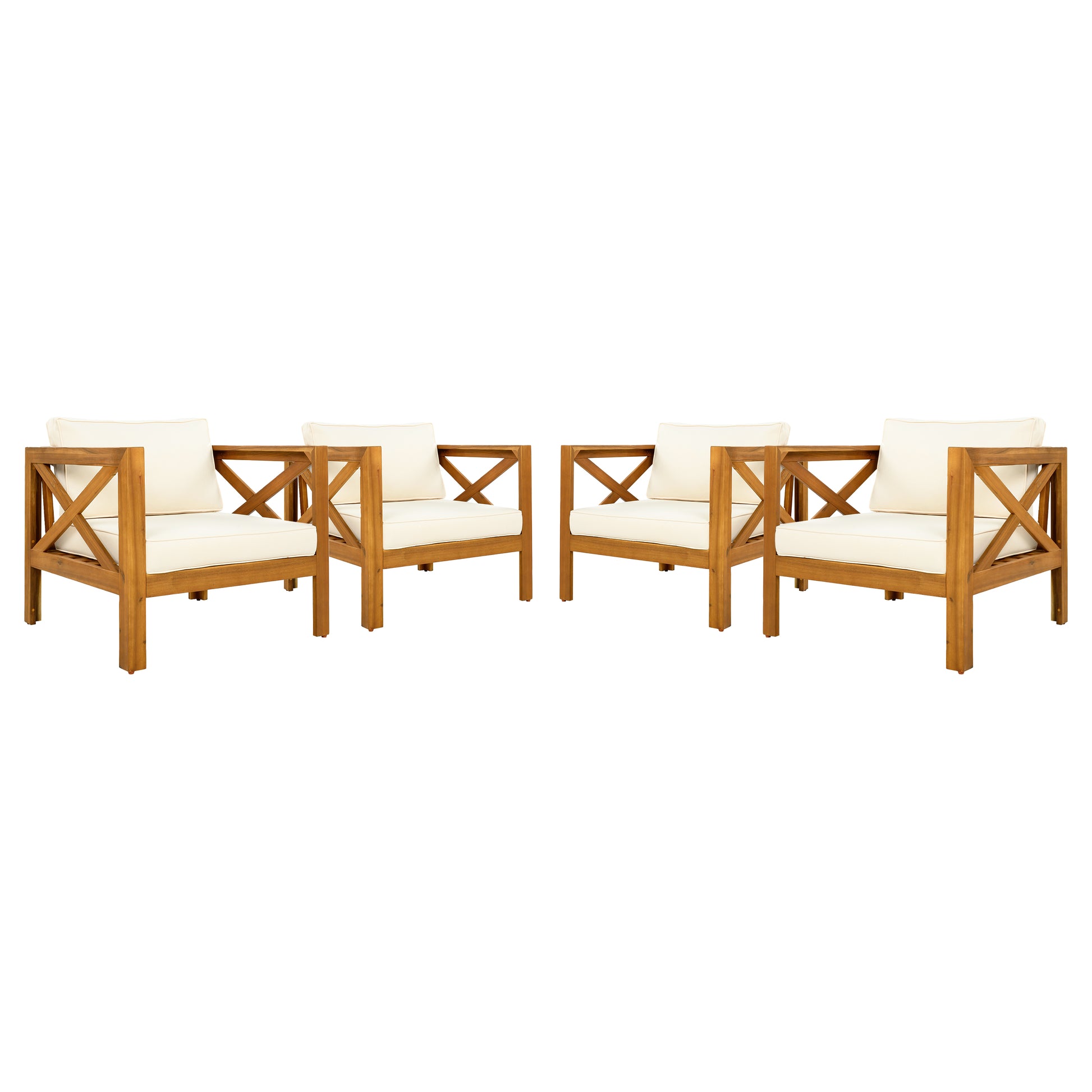 - Durable All-Weather Construction:Crafted for outdoor resilience, this set features Acacia wood frames in a classic teak finish, paired with weather-resistant fabric cushions. With its beautiful teak finish, it combines strength and style, designed to endure the rigors of outdoor use. Its weather-resistant materials ensure it maintains its appeal over time, making it a reliable addition to your outdoor space.