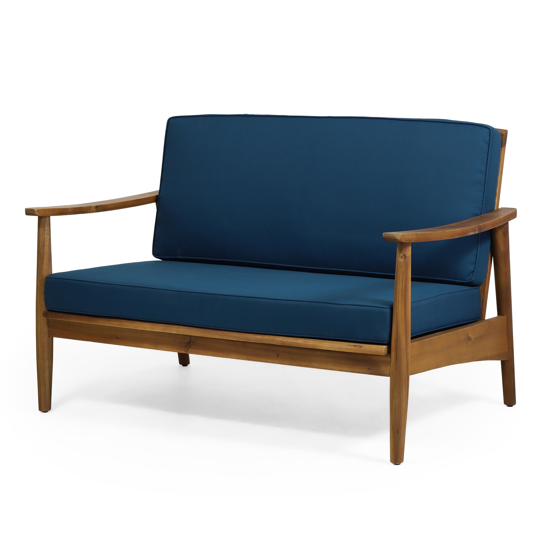 Patio Loveseat and Coffee Table Set, Patio Furniture Set with Cushion, Acacia Wood Frame Conversation Set for Garden, Backyard, Porch and Poolside, Minimalistic Style