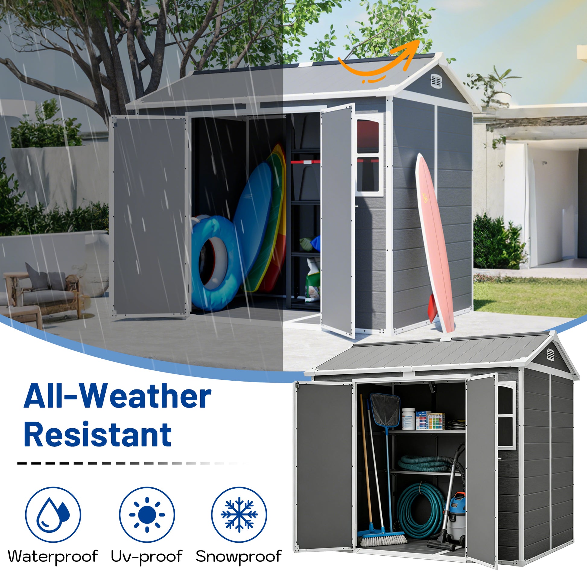 - HIGH-QUALITY MATERIAL: This garden shed is made of 0.51in thick, high-quality polypropylene plastic (PP). Our plastic shed is characterized by excellent features such as recyclability, chemical resistance, complete waterproofing, and being rust-free.