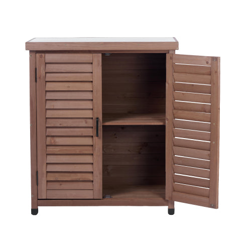 Potting Bench with Storage Cabinet and Metal Table Top for Outdoor Patio, Garden Furniture Wood Workstation Coffee 31.5x17x36''