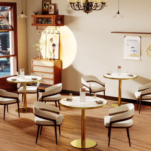 - Elegant & Durable Design – The high-gloss Snow Mountain Stone surface offers a smooth finish, complemented by aluminum alloy borders and sturdy titanium gold legs for lasting sophistication.