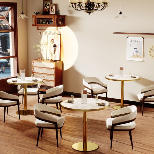 - Elegant & Durable Design – The high-gloss Snow Mountain Stone surface offers a smooth finish, complemented by aluminum alloy borders and sturdy titanium gold legs for lasting sophistication.