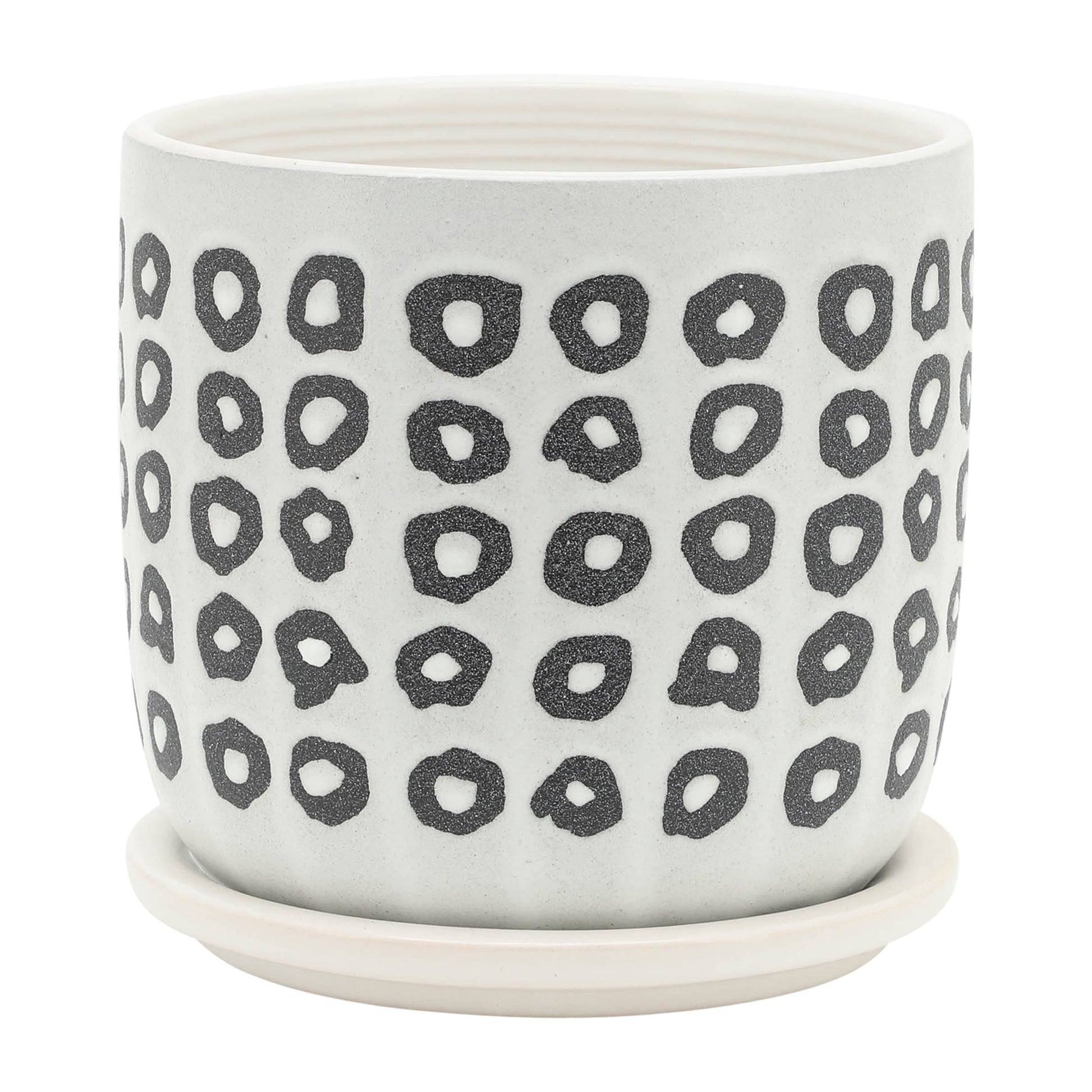S/2 5/6" AZTEC PLANTER W/ SAUCER, BLACK