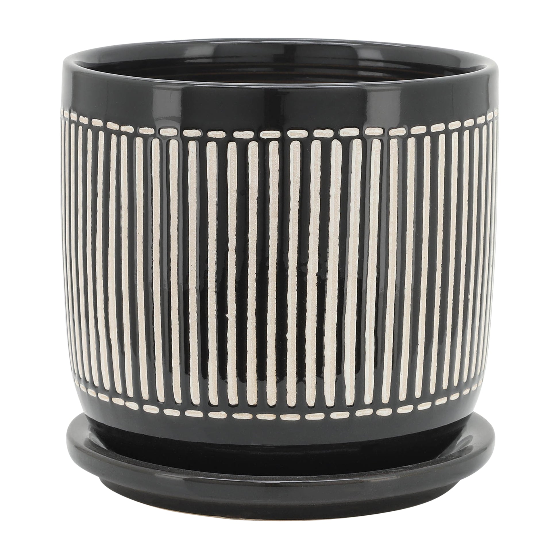 S/2 5/6" VERTICAL LINES PLANTER W/ SAUCER, BLACK