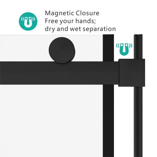 S-RM6076TB 56-60"W x 76"H Sliding Shower Door, 8mm Frameless Glass Shower Door with Matte Black Hardware, Towel Bar and Handle,Drop Shipping available