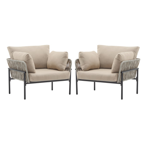 [Set of 2] 36" Beige Iron Lounge Chair with Rope Weave Design and Plush Cushions, Perfect for Indoor and Outdoor Relaxation