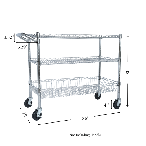 - DIMENSION & SERVICE: This heavy duty mobile cart measures 36"L x 18"W x 32"H ( length not including handle), easy to assemble, no tools required. High grade material brings you confidence and remove all risks.