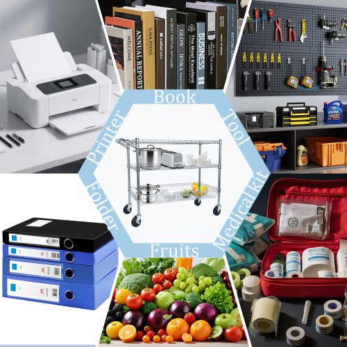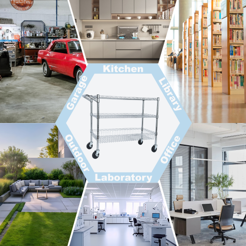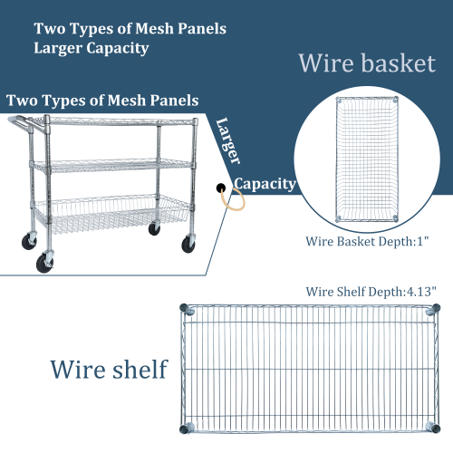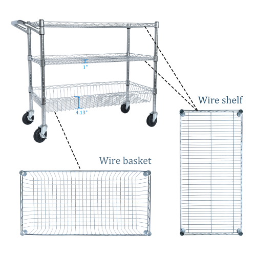 - HUMANIZATION DESIGN - This mobile cart comes with a convenient handle push-bar and a ventilated basket. The shelves can be adjusted at one-inch intervals.
