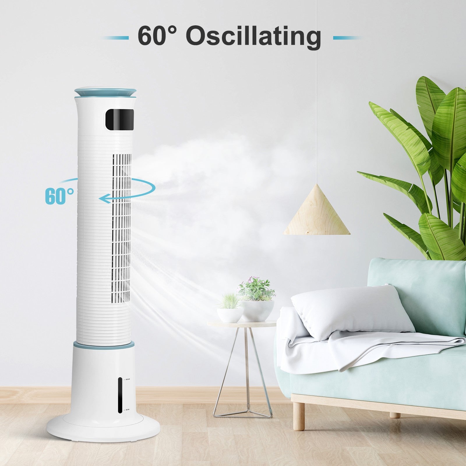 - [BETTER SLEEP] Cooling mist tower is quiet with noise only 60 Hz when using, also, it can help improve the quality of indoor air and help you to get a good sleep.