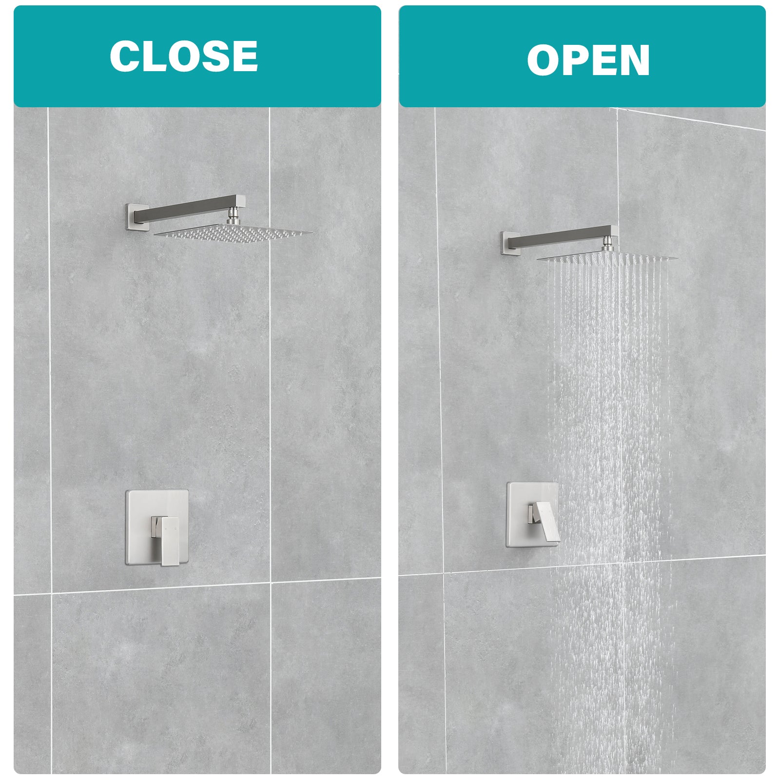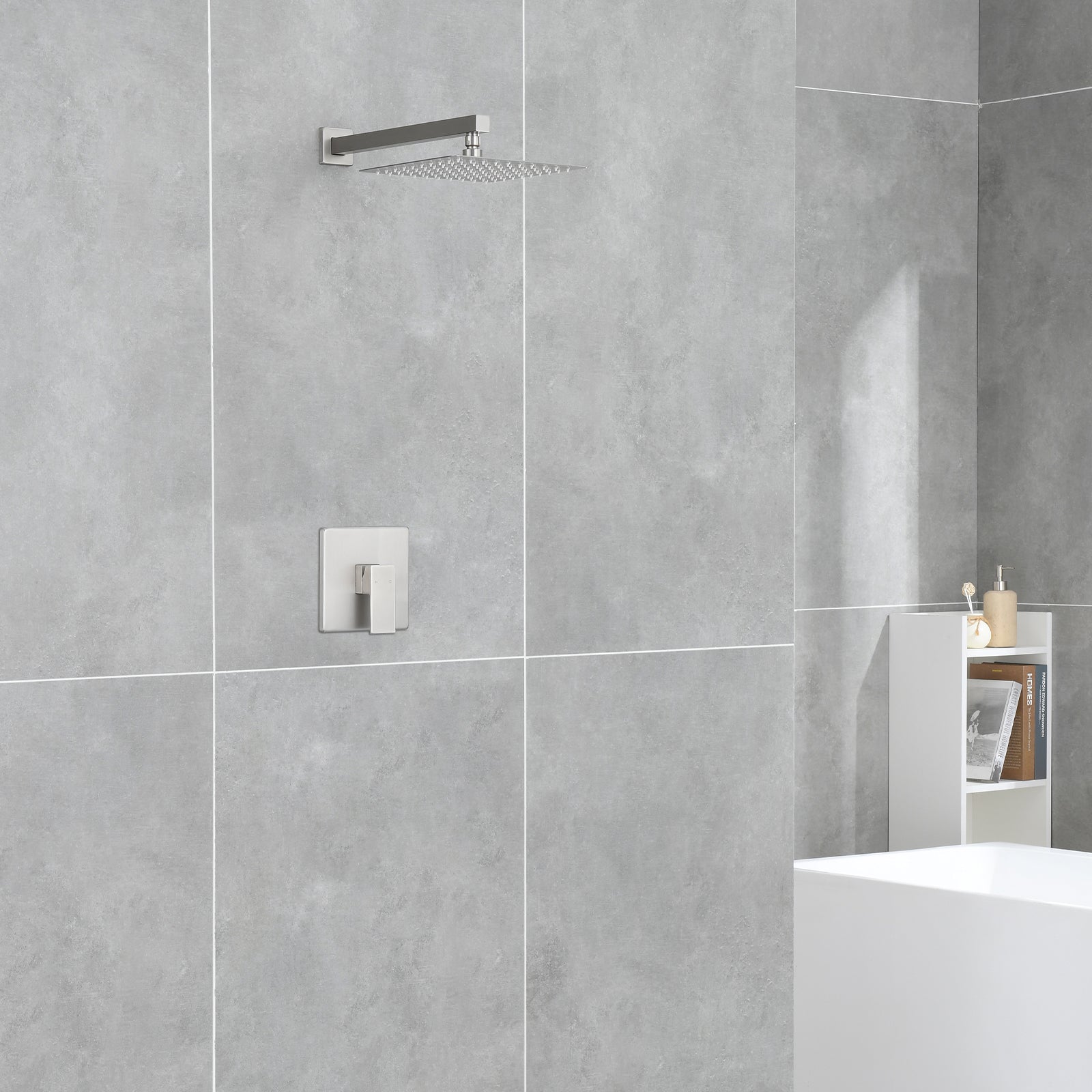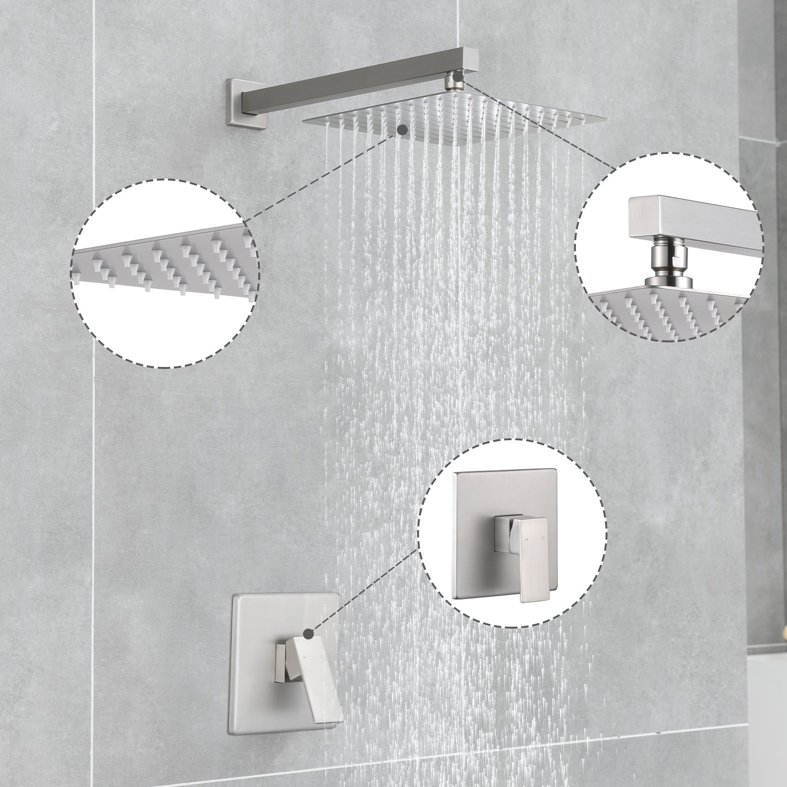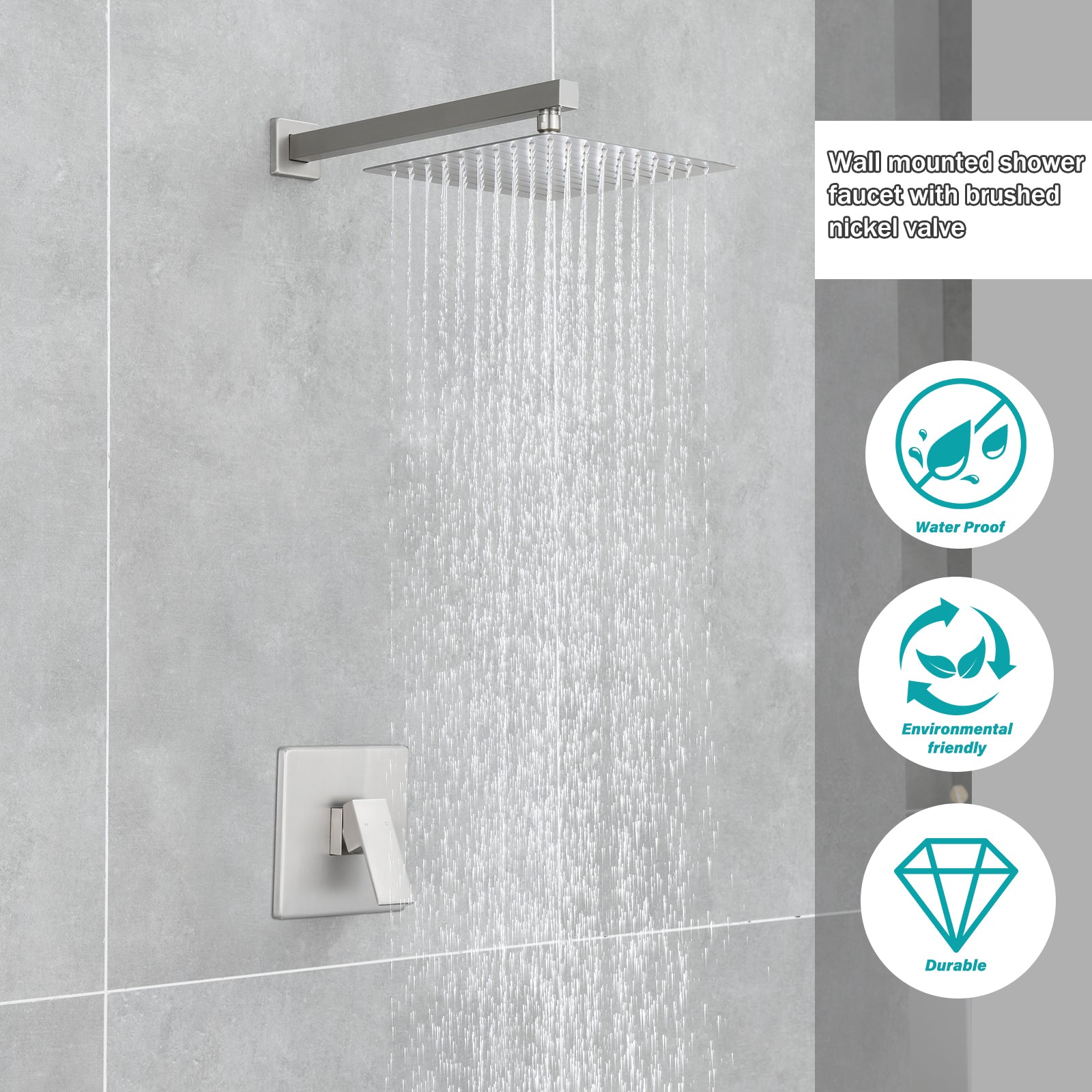 Single Handle 1-Spray Shower Faucet 2.5 GPM with Wall Mounted 10 in. Rain Shower Head Faucet in Brushed Nickel