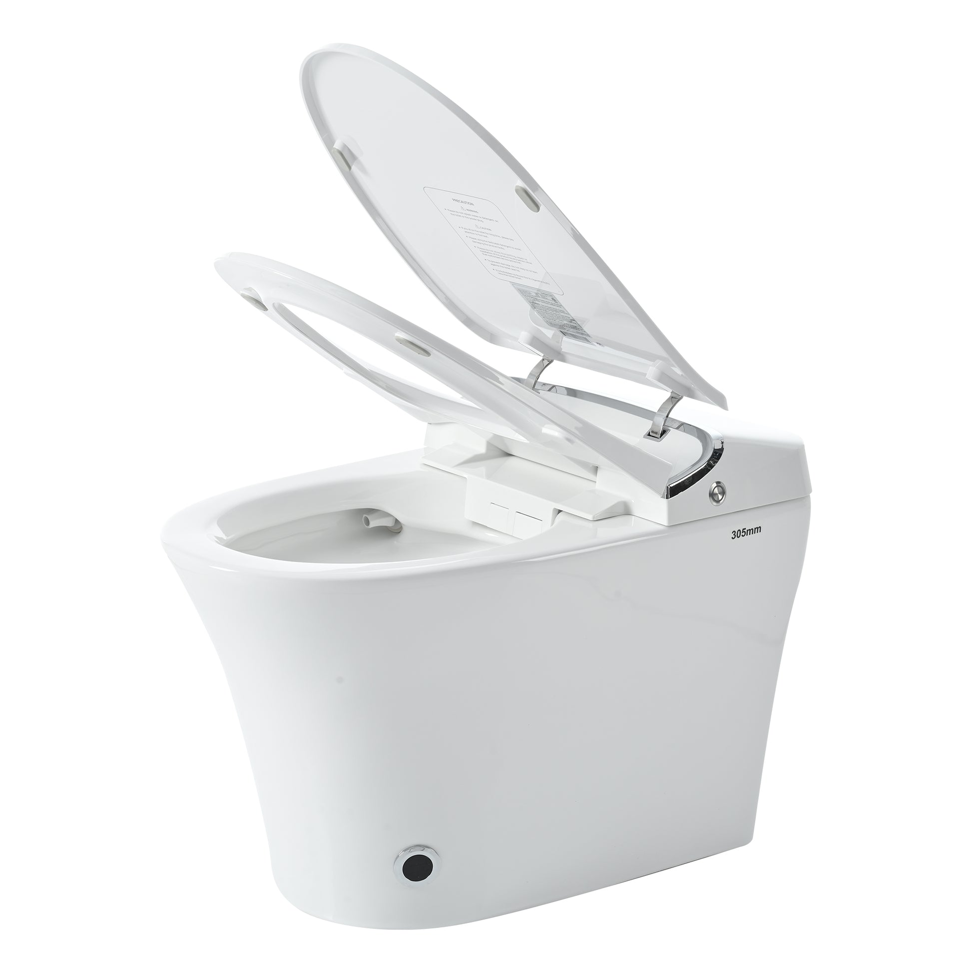 - Multiple Ways to Control Flushing: Smart Toilet automatically performs flush when you step away from the toilet seat, or flush the toilet through the foot induction method, Of course, the remote control and knob can also control the flush.Occasionally there is no fear of power failure. The built-in powerful battery can flush water approximately 2500 times.