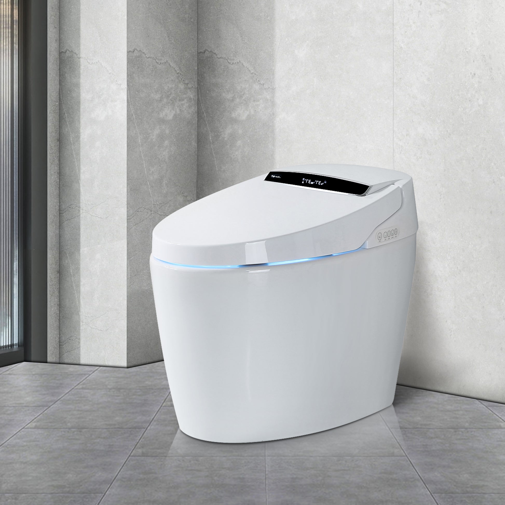 - Designed for comfort and convenience, our smart toilet offers instant warm water, warm air drying, night light, heated seat, LED display, seat temperature adjustment, auto flush, remote control, and auto deodorization, enhancing the overall user experience.