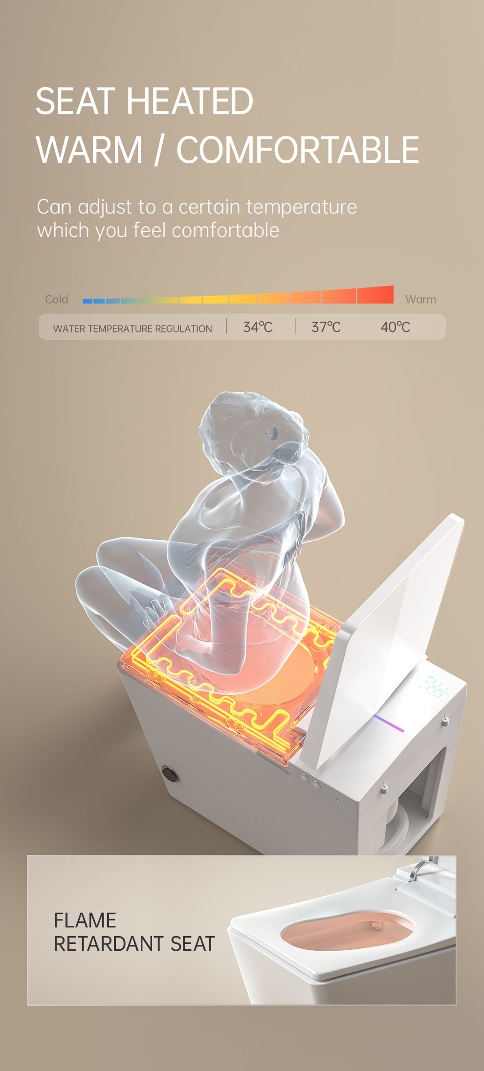 - INSTANT WARM WATER & HEATED BIDET SEAT: Experience ultimate comfort with instant warm water and a heated bidet seat, customization with 3 levels adjustable water temperatures.