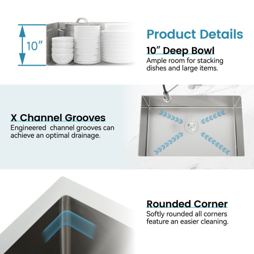 - Single Bowl Design: Spacious design accommodates various items. Offer ample space for efficient dishwashing and food preparation, making kitchen tasks a breeze.
