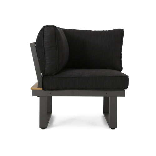 - FAUX WOOD ACCENTS: This set features built-in side tables, offering extra space to set down drinks or other items. Made from a wood alternative, these accents are engineered from recyclable materials to give the appearance of a beautiful wood look without the high upkeep.